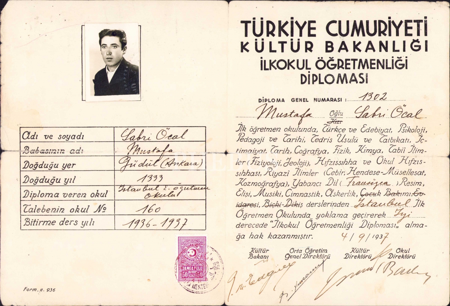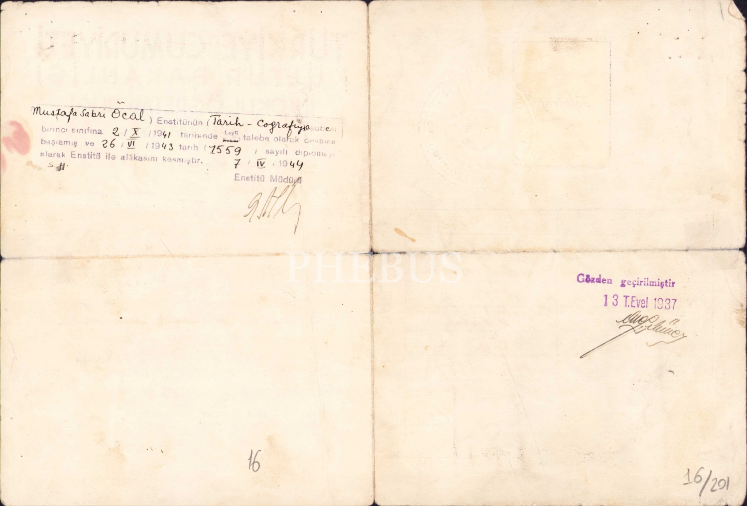 Türkiye Cumhuriyeti Kültür Bakanlığı İlkokul Öğretmenliği Diploması, 1937, 29x19 cm