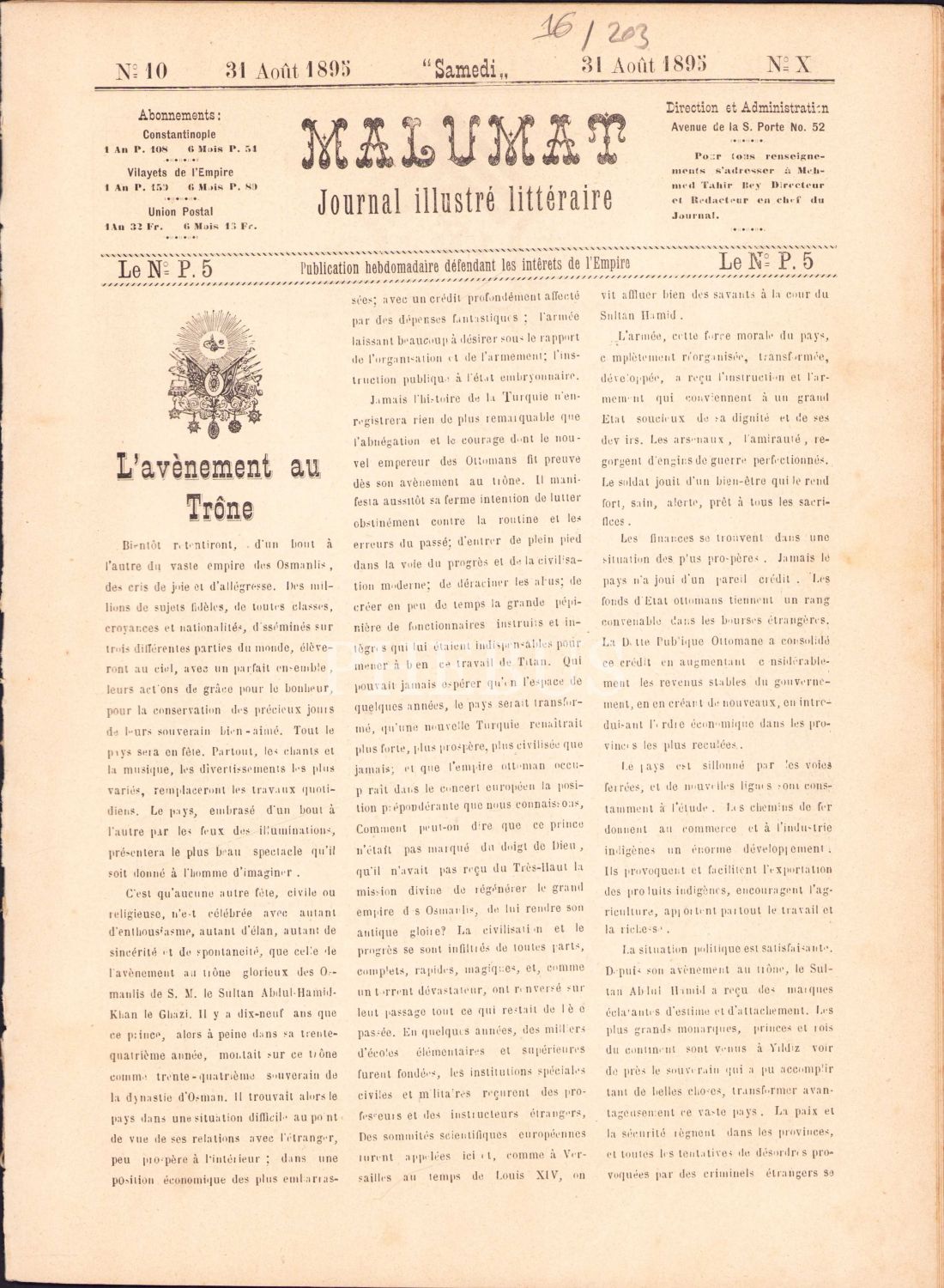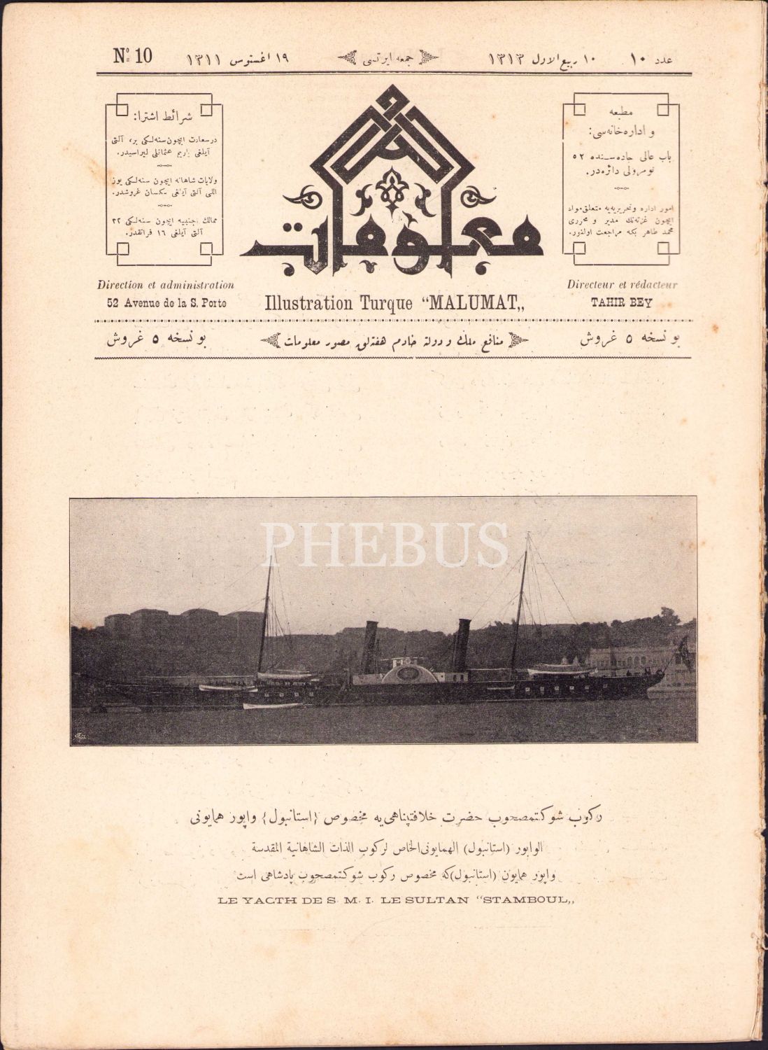 Osmanlıca 1311 tarihli "Malumat" mecmuası, kapak İstanbul Vapuru Hümayun, resimli, sayfalar kopuk, sırtı haliyle, 24 sayfa, 23x33 cm