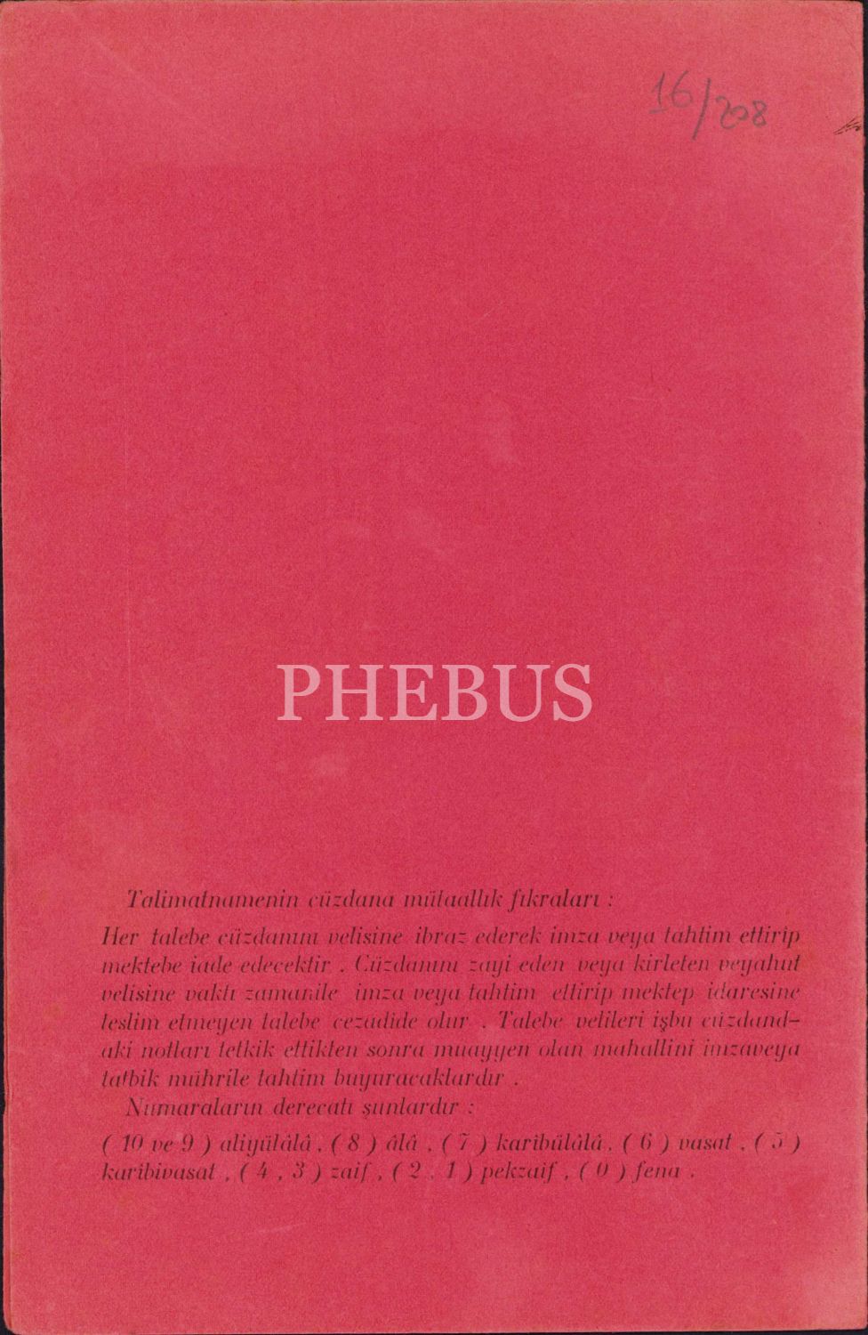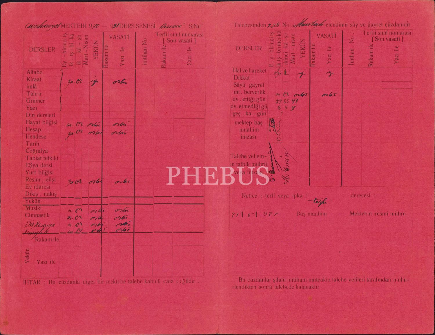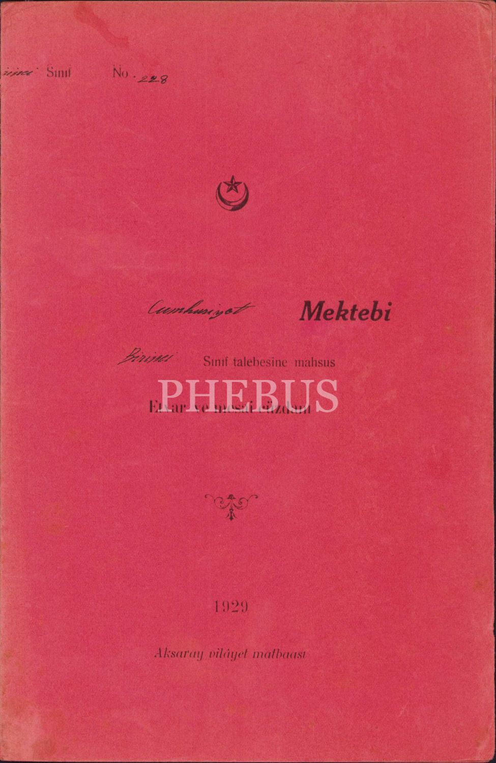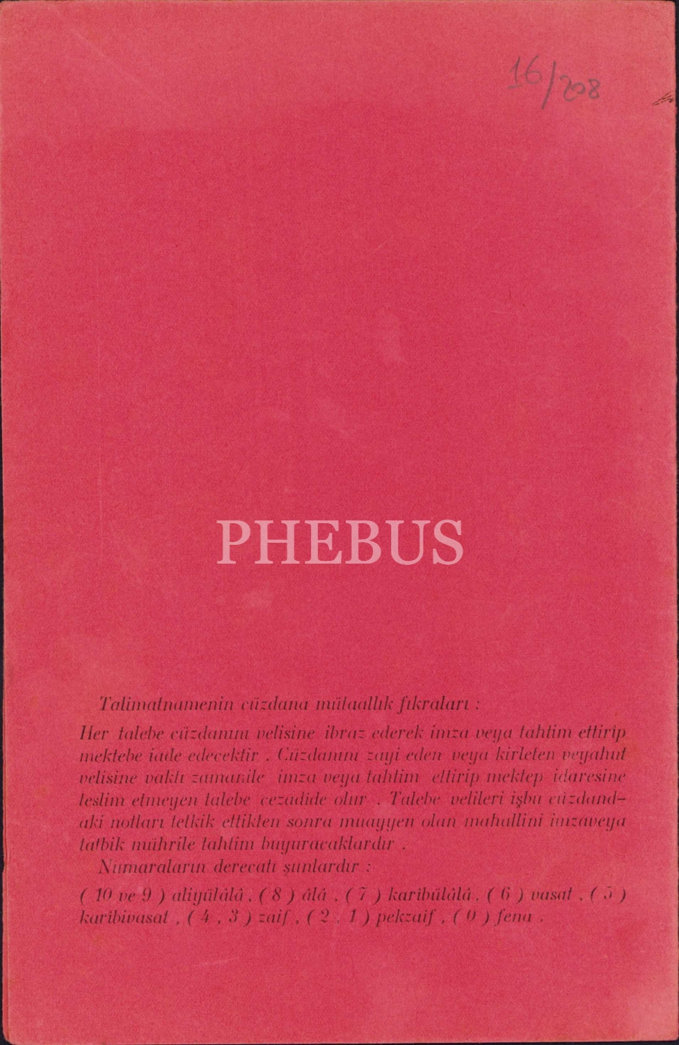 Cumhuriyet Mektebi Birinci sınıf talebesine mahsus mesai cüzdanı, 1931, 15x23 cm
