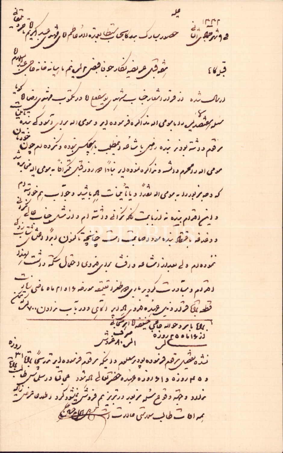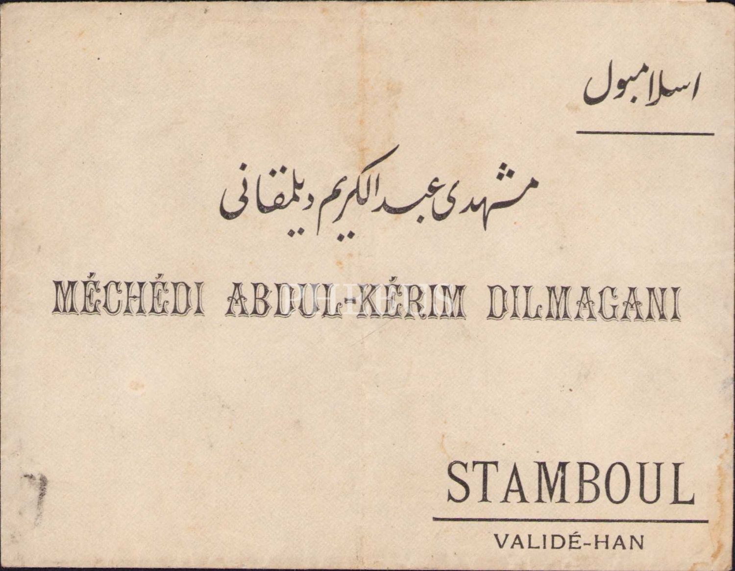 Osmanlıca Fransızca Meşhedi Abdülkerim Dilmekani, İstanbul antetli zarf, Osmanlıca mektup, 1332 tarihli