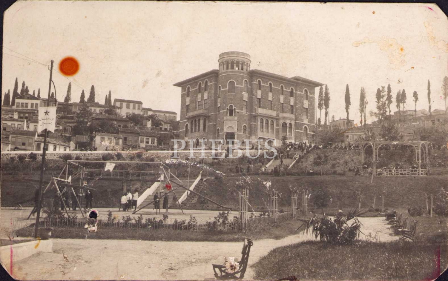 Osmanlıca Himaye-i Etfal Cemiyeti, pankartlı, İzmir, ortasında delik var, leke mevcut, 12x7 cm