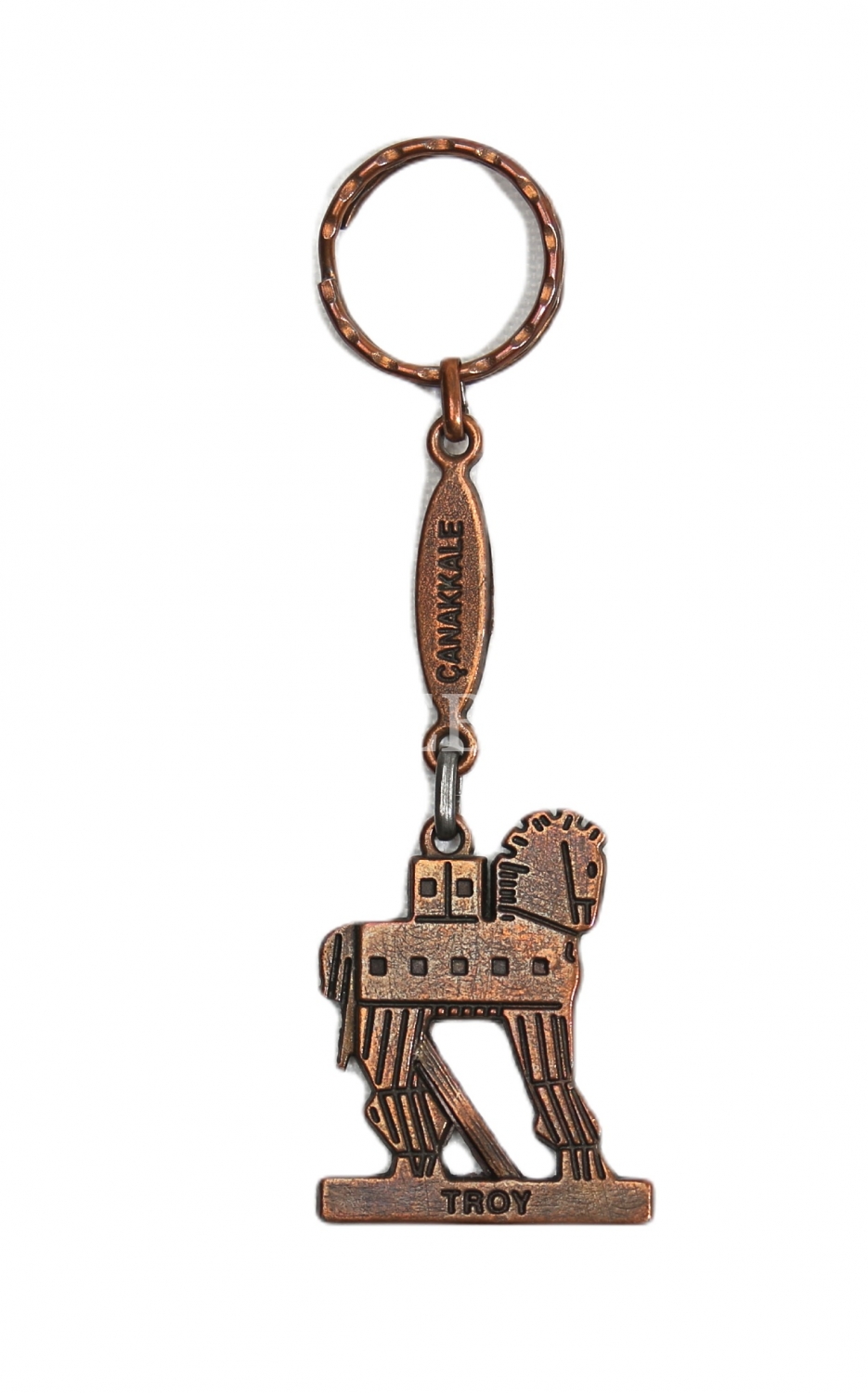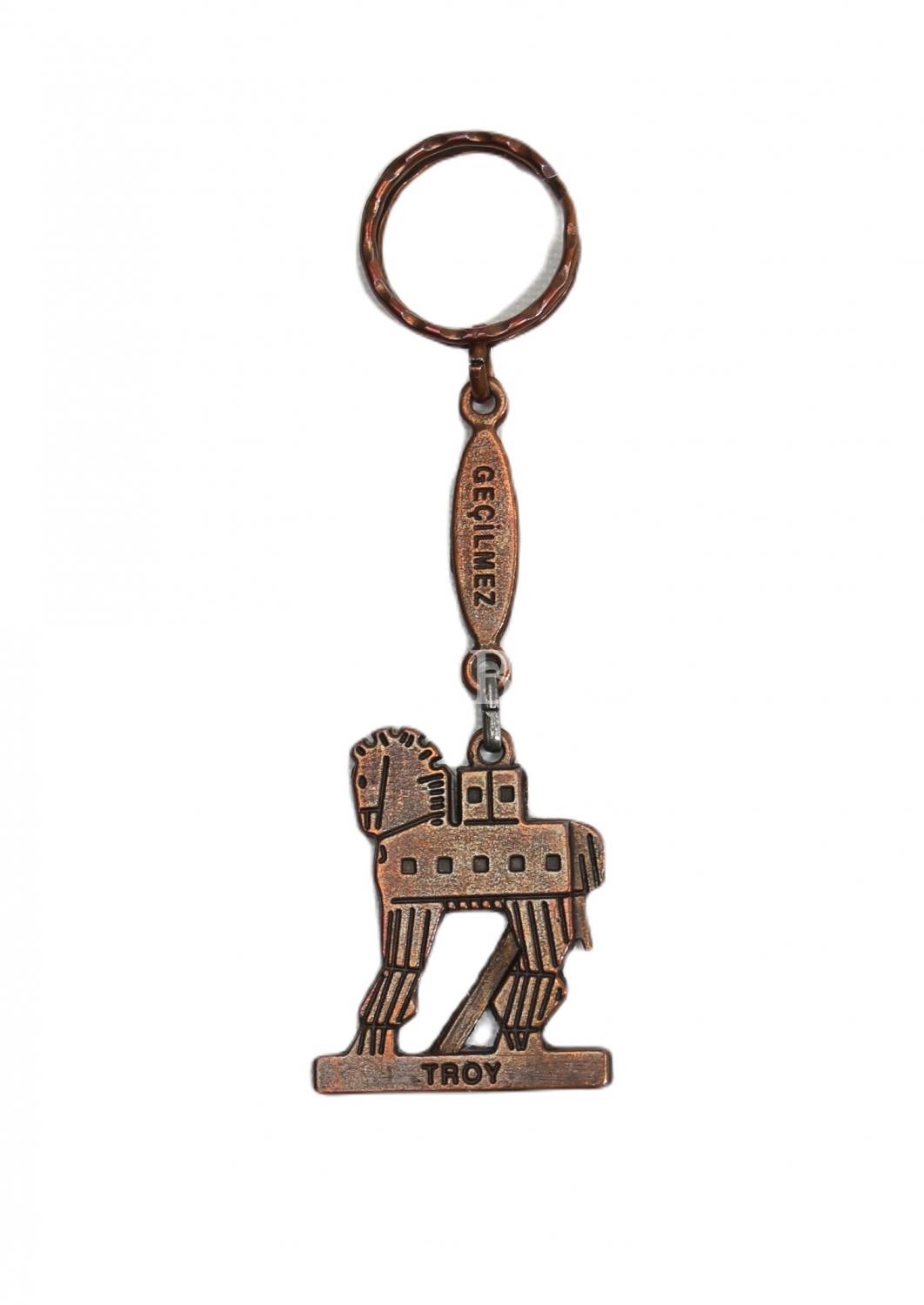 'Çanakkale Geçilmez'' yazılı, Truva atı görselli anahtarlık, 4x11 cm