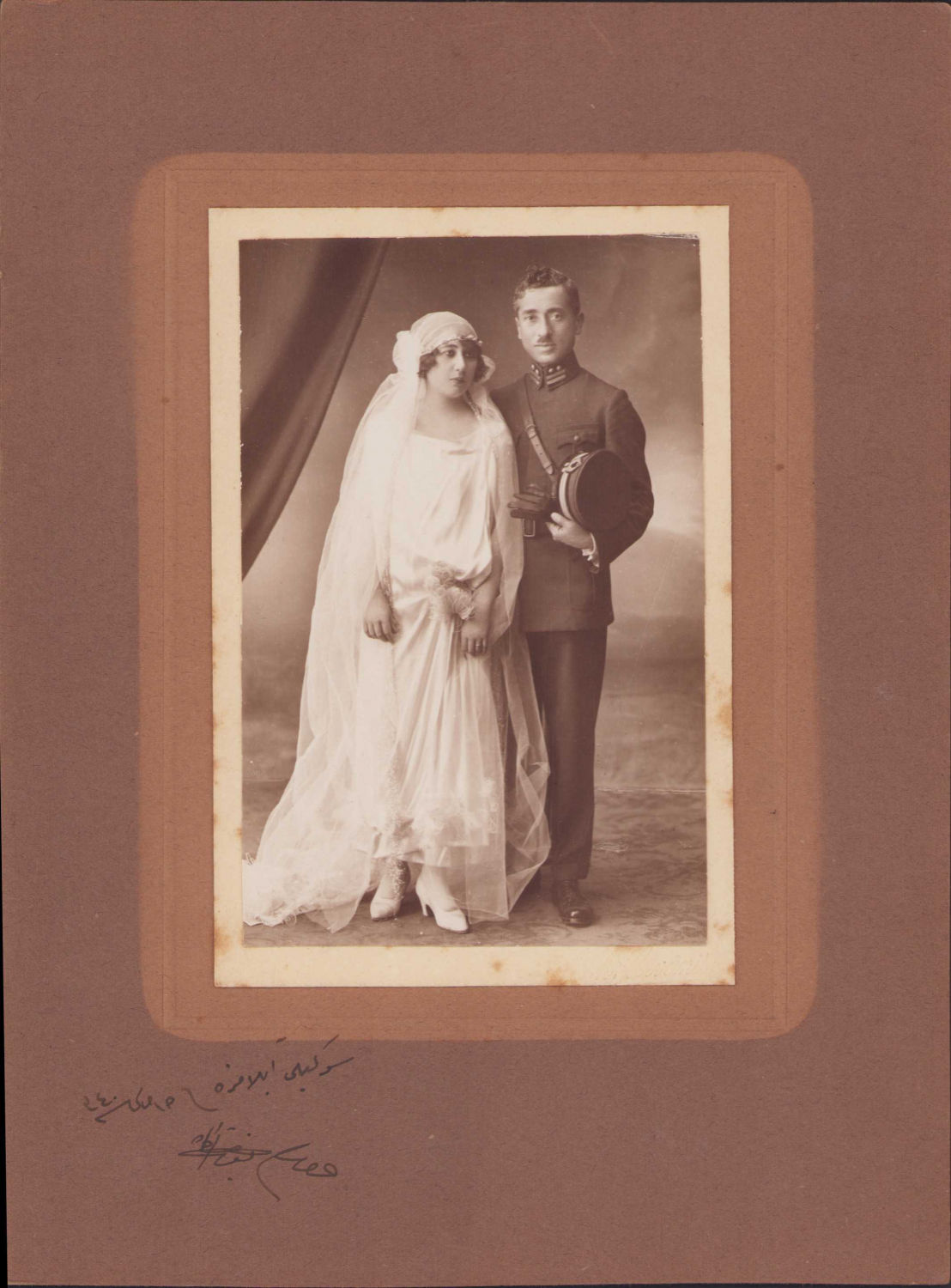 Osmanlıca yazılı, Foto Servanis kaşeli, gelin damat fotoğrafı.
