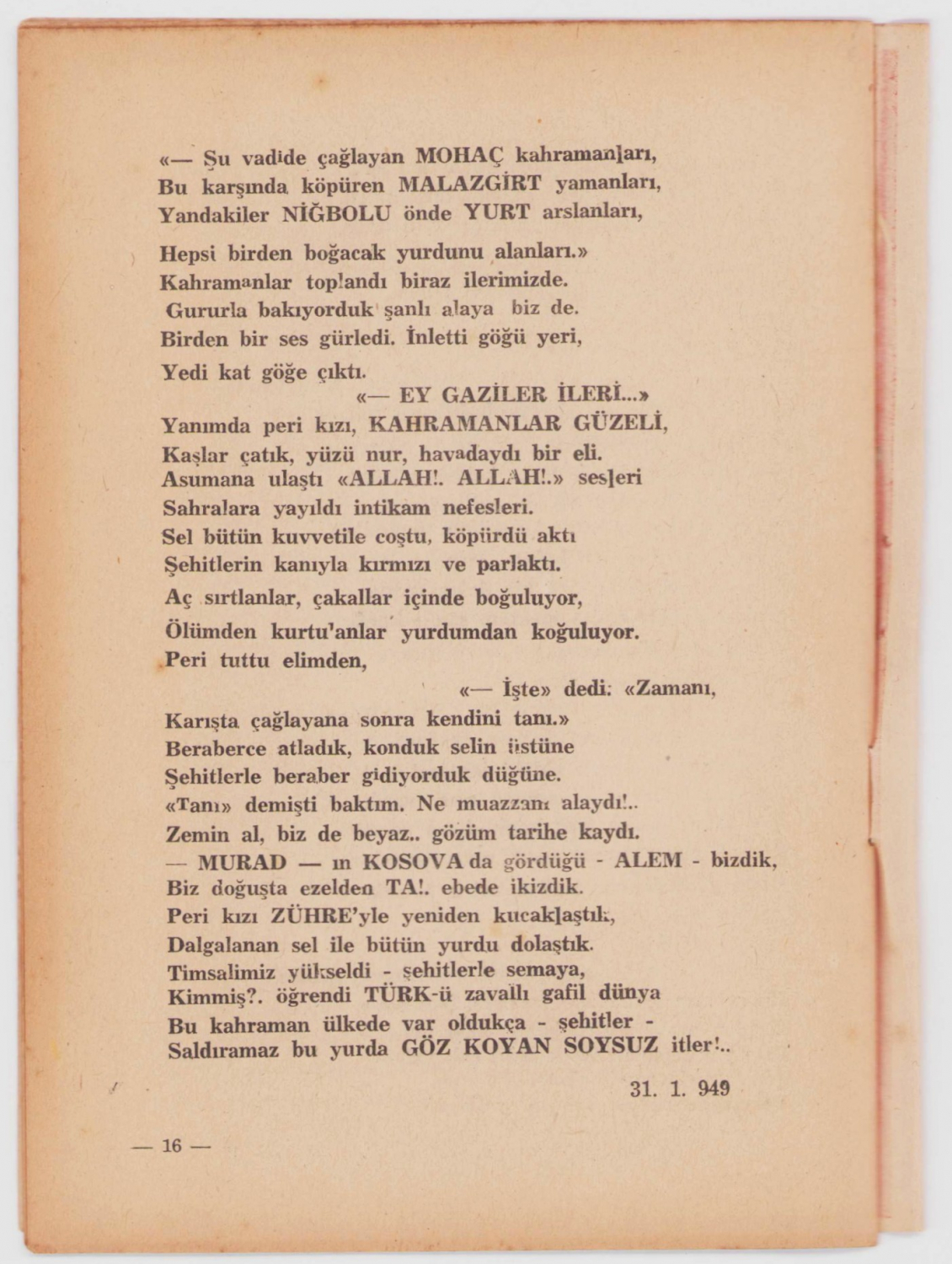 Bir Peri Masalı - Manzum Destanı, Süleyman S. Aygen, Ülkü Matbaası, İstanbul, 1949, 16 sayfa, 14x20cm