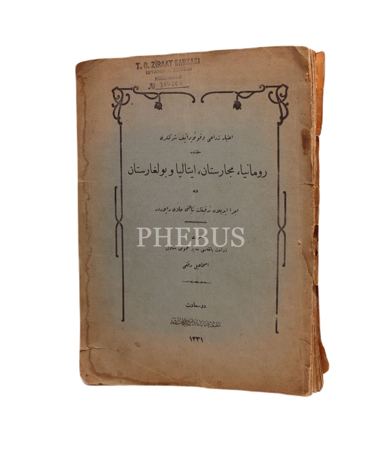 Osmanlıca İtibar-ı Zıraî ve Kooperatif Şirketleri Hakkında Romanya, Macaristan, İtalya ve Bulgaristan'da İcra Edilen Tedkikat Netayicini Havi Raporudur, İsmail Rıfkı, Matbaa-i Osmaniye, Dersaadet, 1331