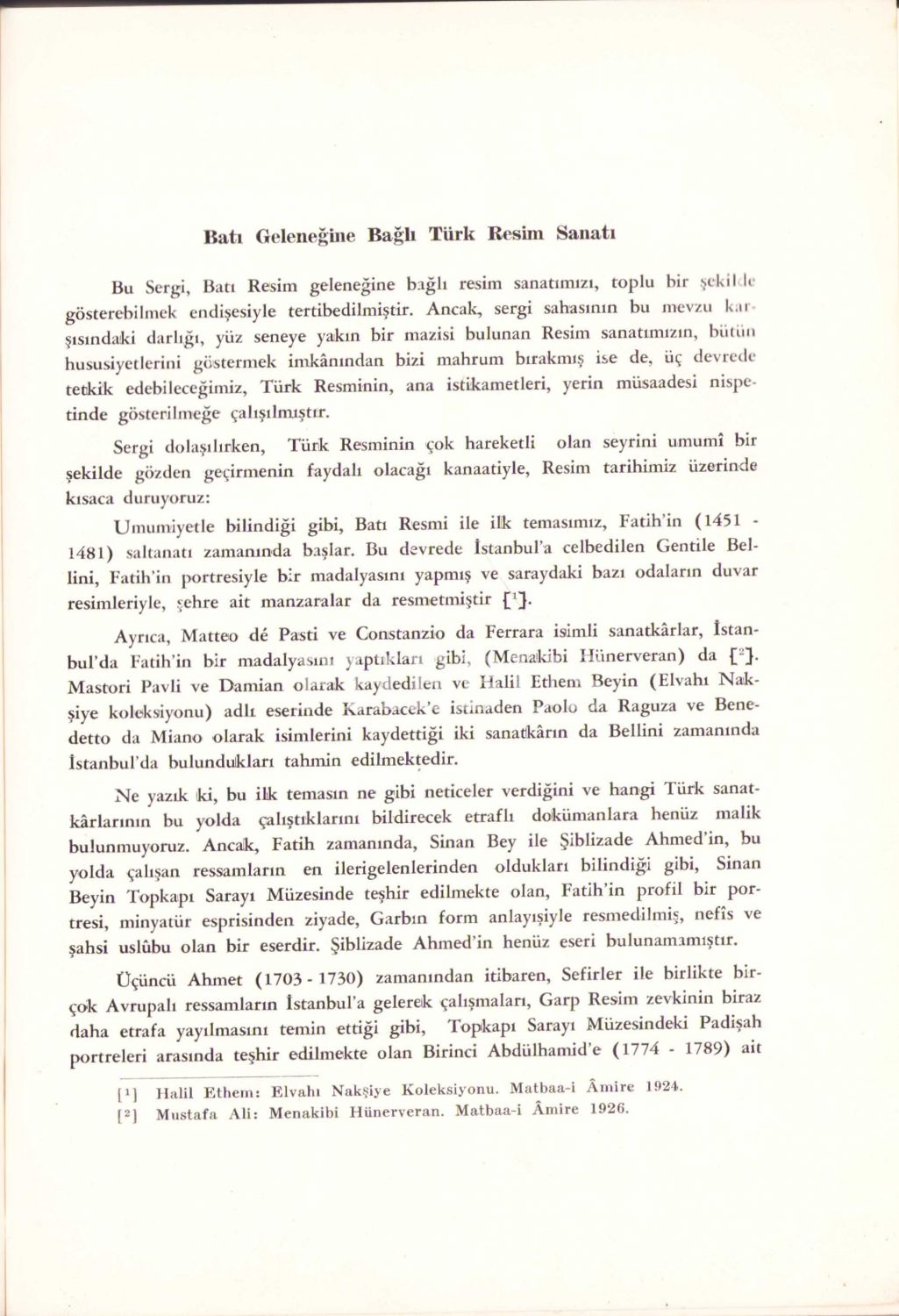 Yüz Senelik Türk Resmi Sergisi, Maarif Basımevi, İstanbul 1956, 38 sayfa, 16x22 cm
