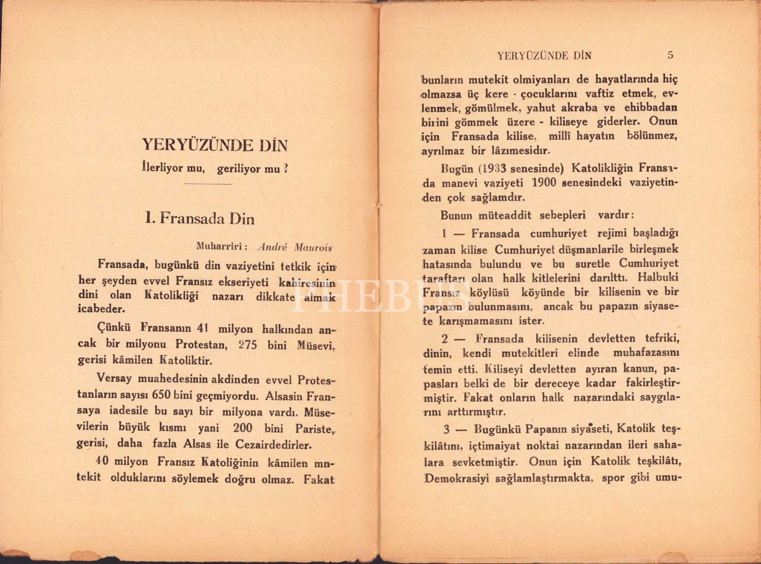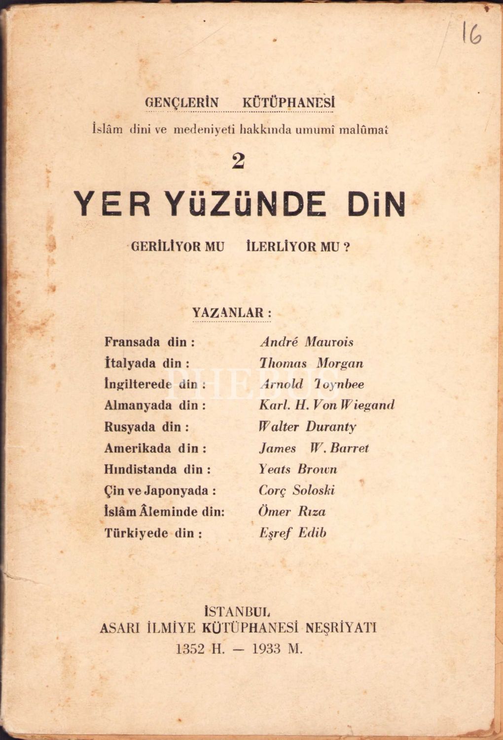 İslam Dini ve Medeniyeti Hakkında Umumi Malumat 2 Yer Yüzünde Din Geriliyor mu? İlerliyor mu? İstanbul, 1933, 54 sayfa, 13x19 cm