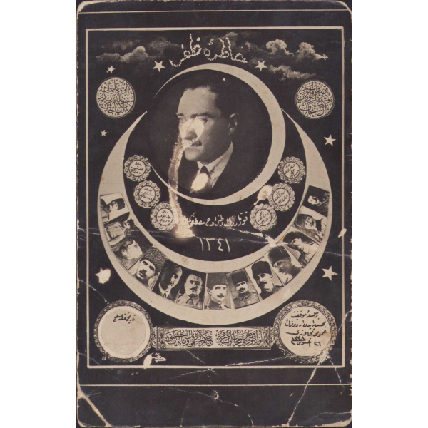 Kurtuluş Savaşı anısına basılan Hatıra-i Zafer kartpostalı, Gazi Mustafa Kemal Atatürk ve silah arkadaşları, 1341 tarihli, iki kenarı kırık, haliyle