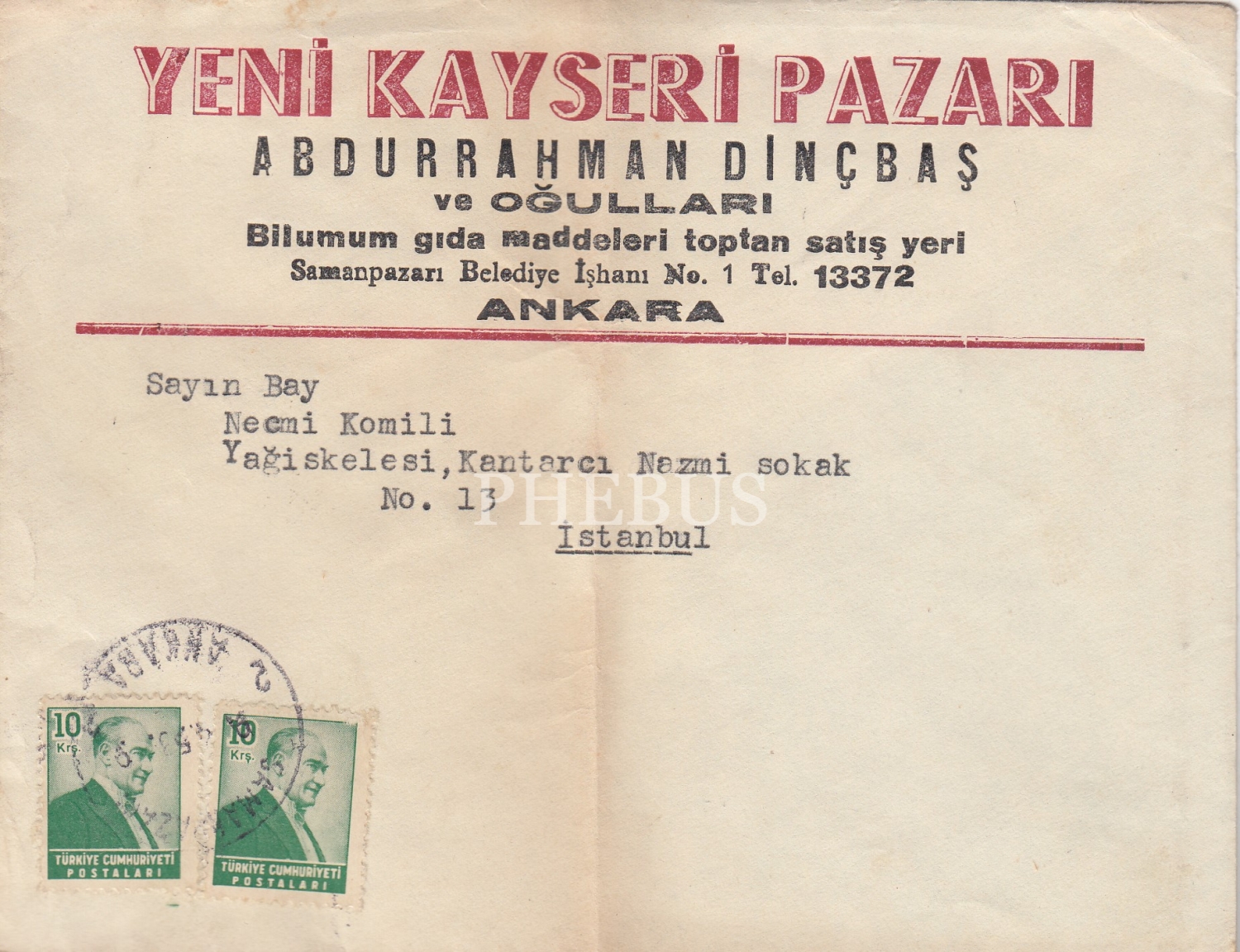 Ankara Yeni Kayseri Pazarı Antetli Zeytinyağcı Komililere Gönerilmiş Zarf