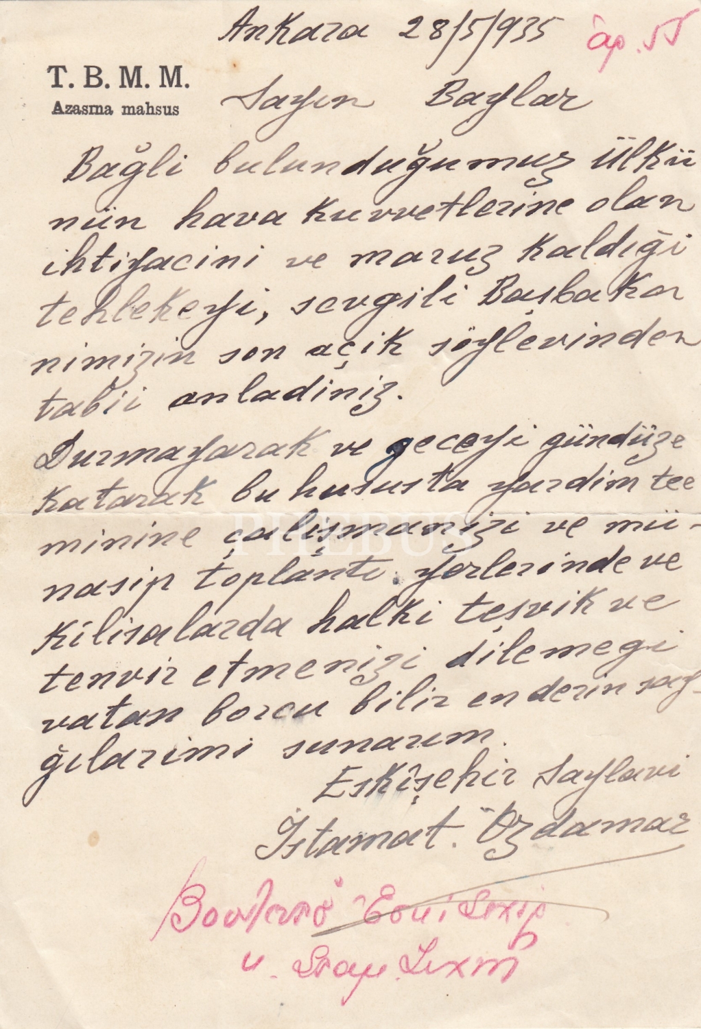 TBMM Antetli Eskişehir Milletvekili İmzalı Mektup