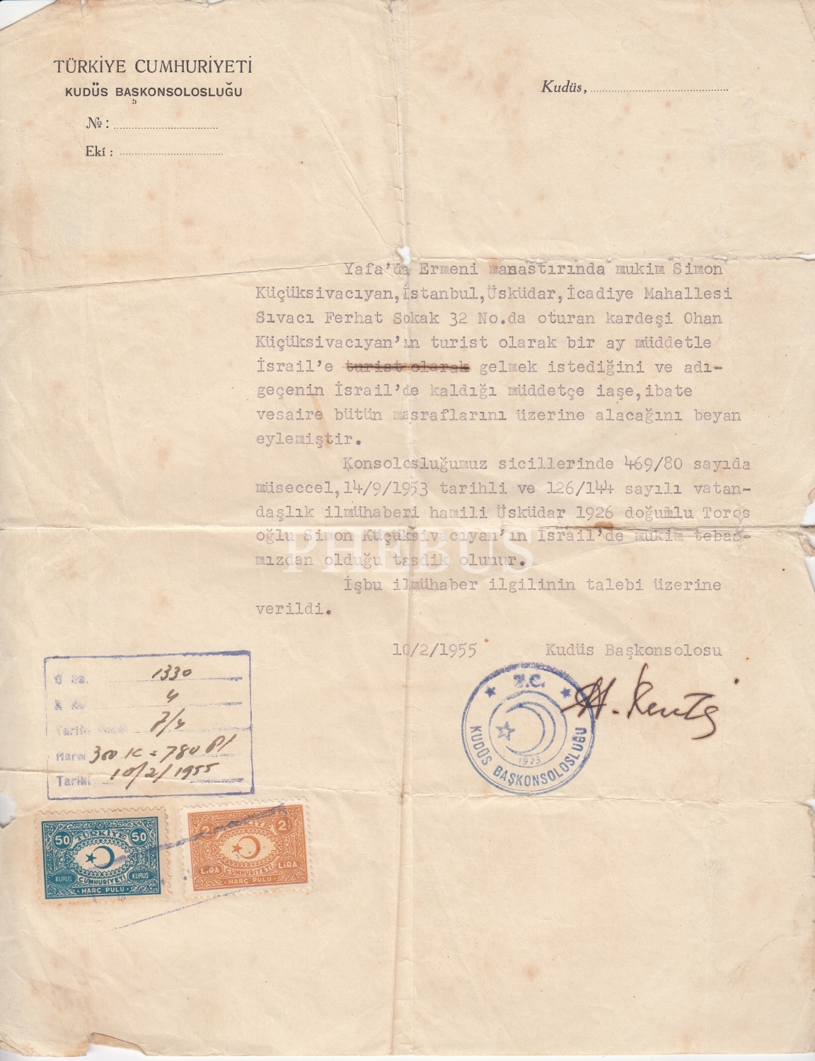 Türkiye Cumhuriyeti Kudüs Başkonsolosluğu Antetli Belge