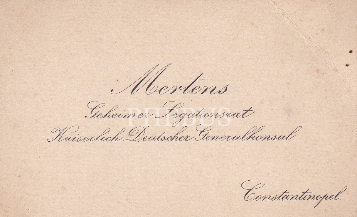 Constantinople Alman Sefarethanesi Görevlisi Mertens Kartvizit