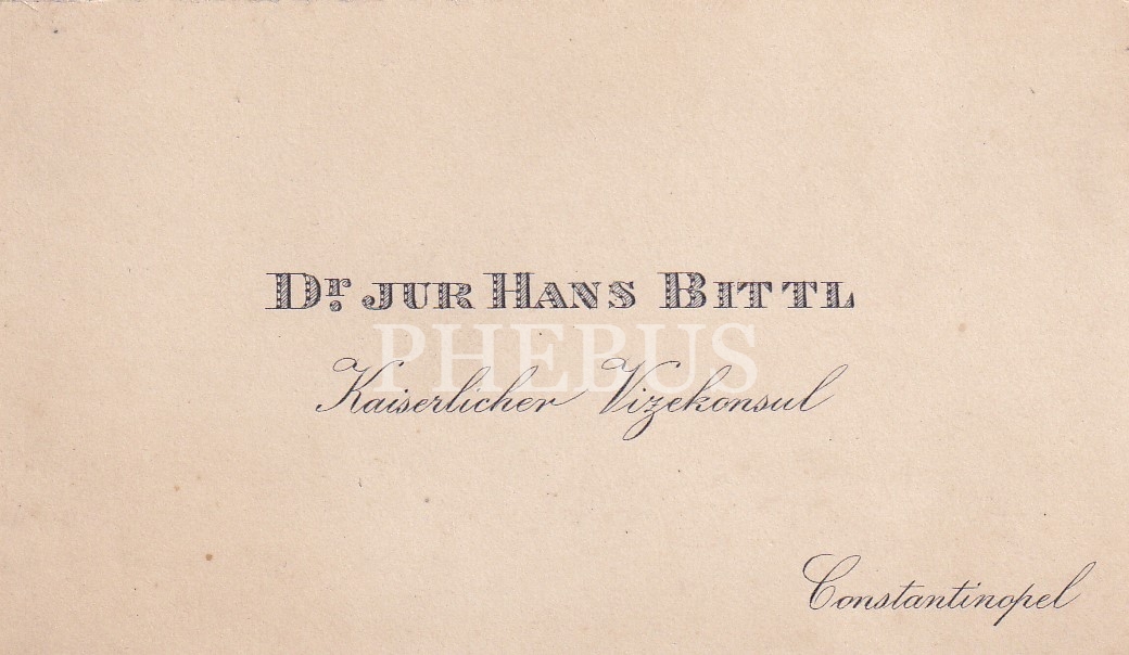 Constantinople Alman Sefarethanesi Görevlisi Jur Hans Bittl Kartvizit