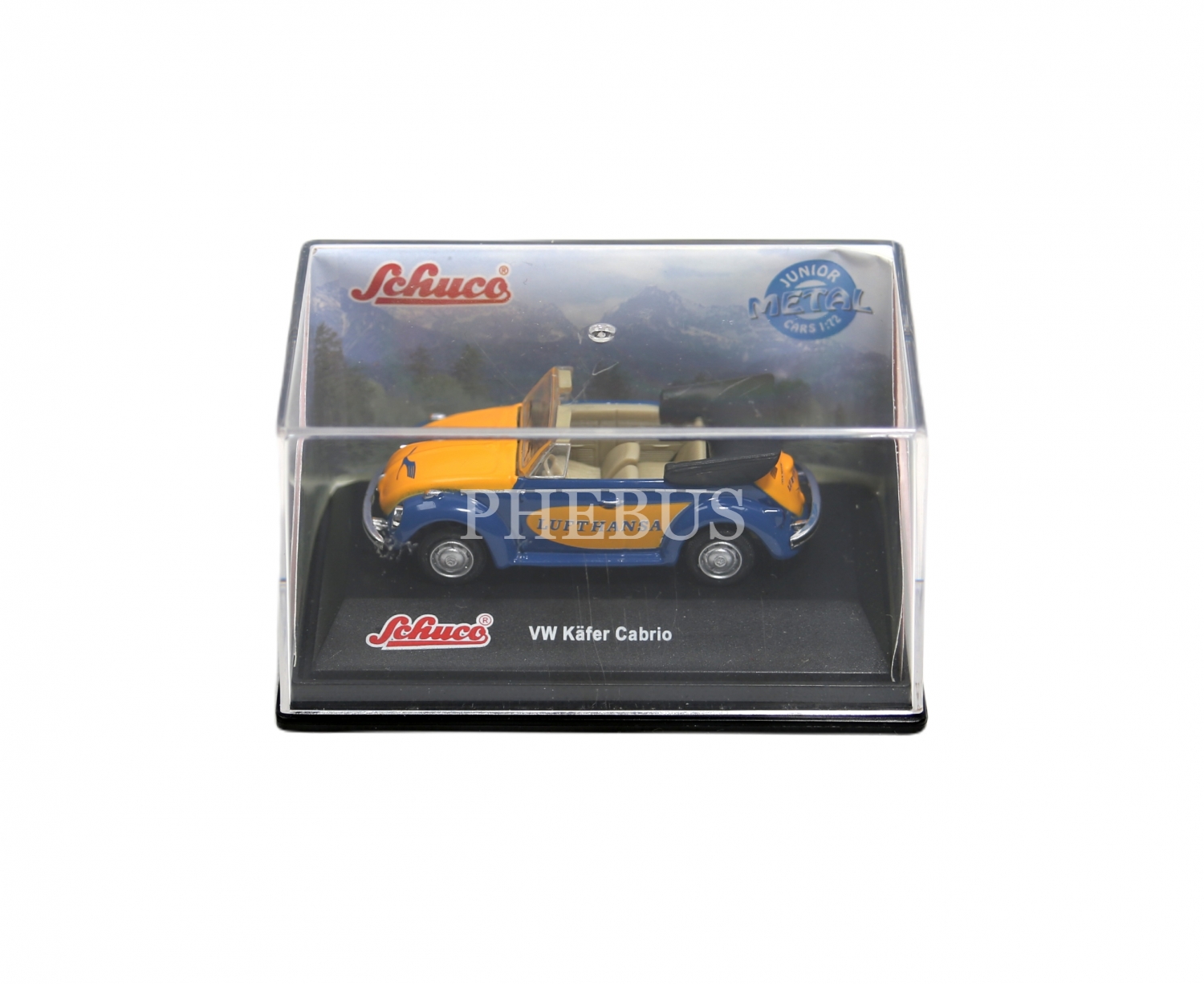 Alman malı, Schuco marka, VW Kafer Cabrio, Lufthansa reklamlı, orijinal kutusunda oyuncak araba, 8x5x4 cm