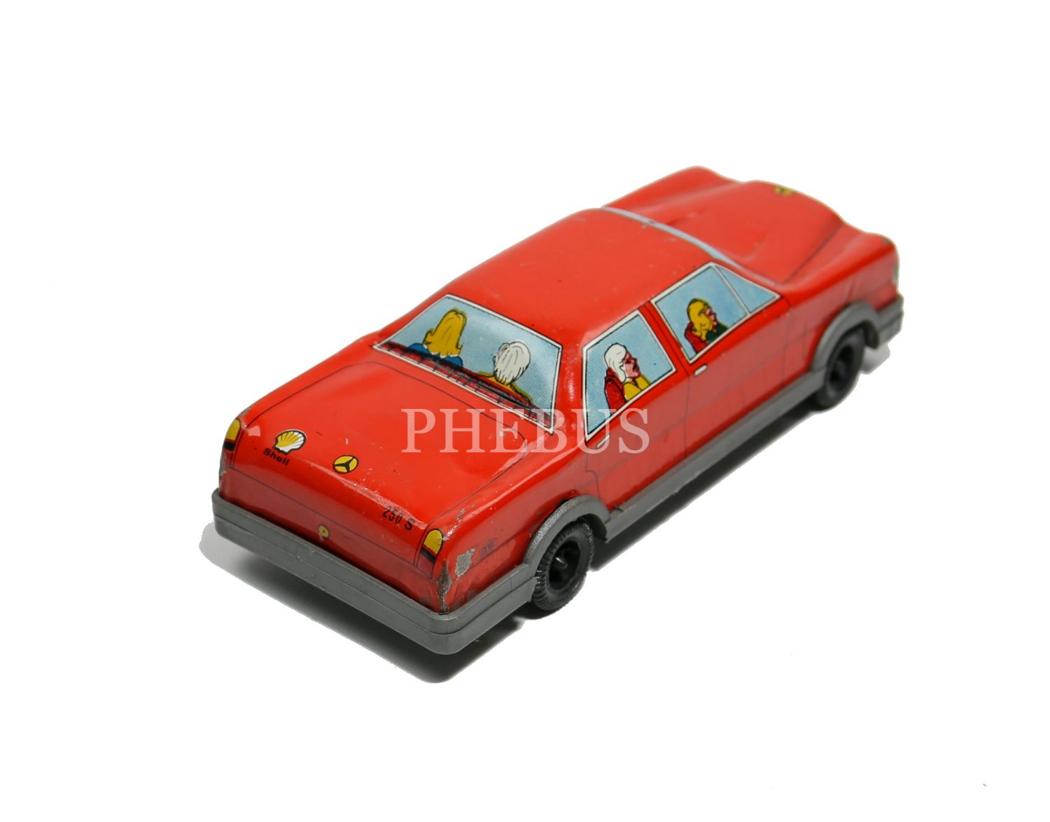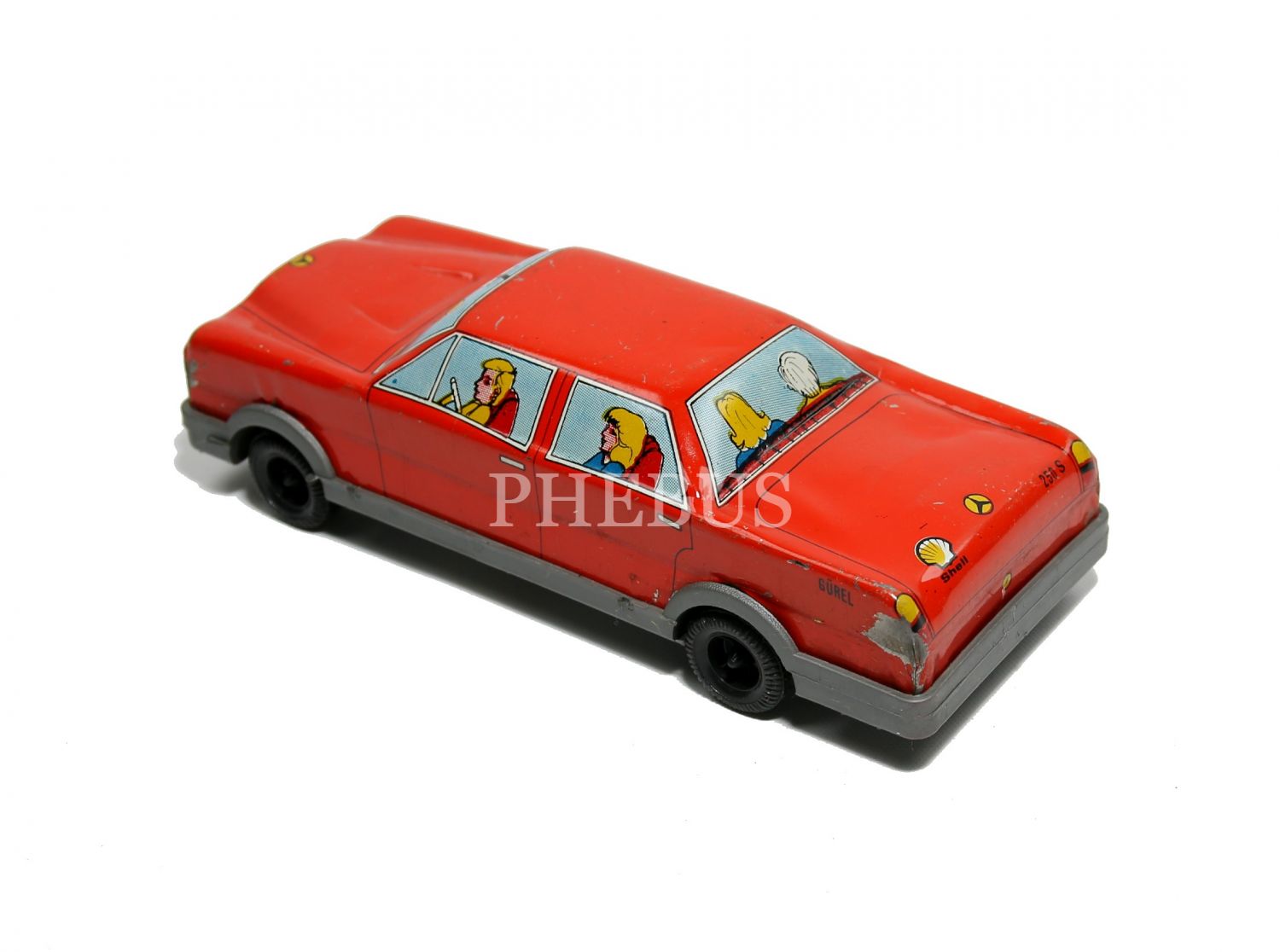 Türk malı, Gürel marka, Mercedes 250 S model, Shell reklamlı, teneke araba, 18x7x5 cm