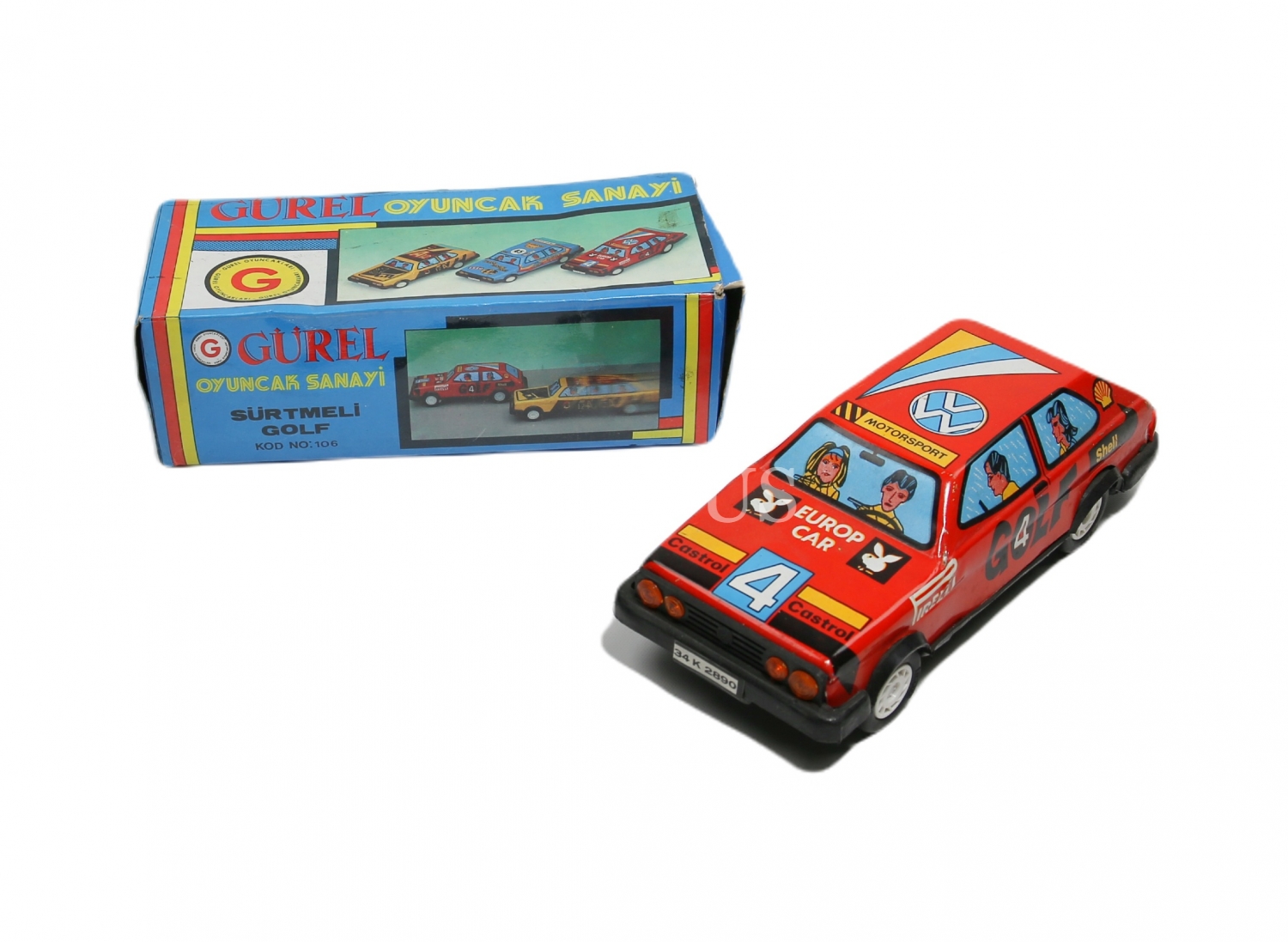 Türk malı, Gürel marka, sürtmeli, golf teneke araba, 18x7x5 cm