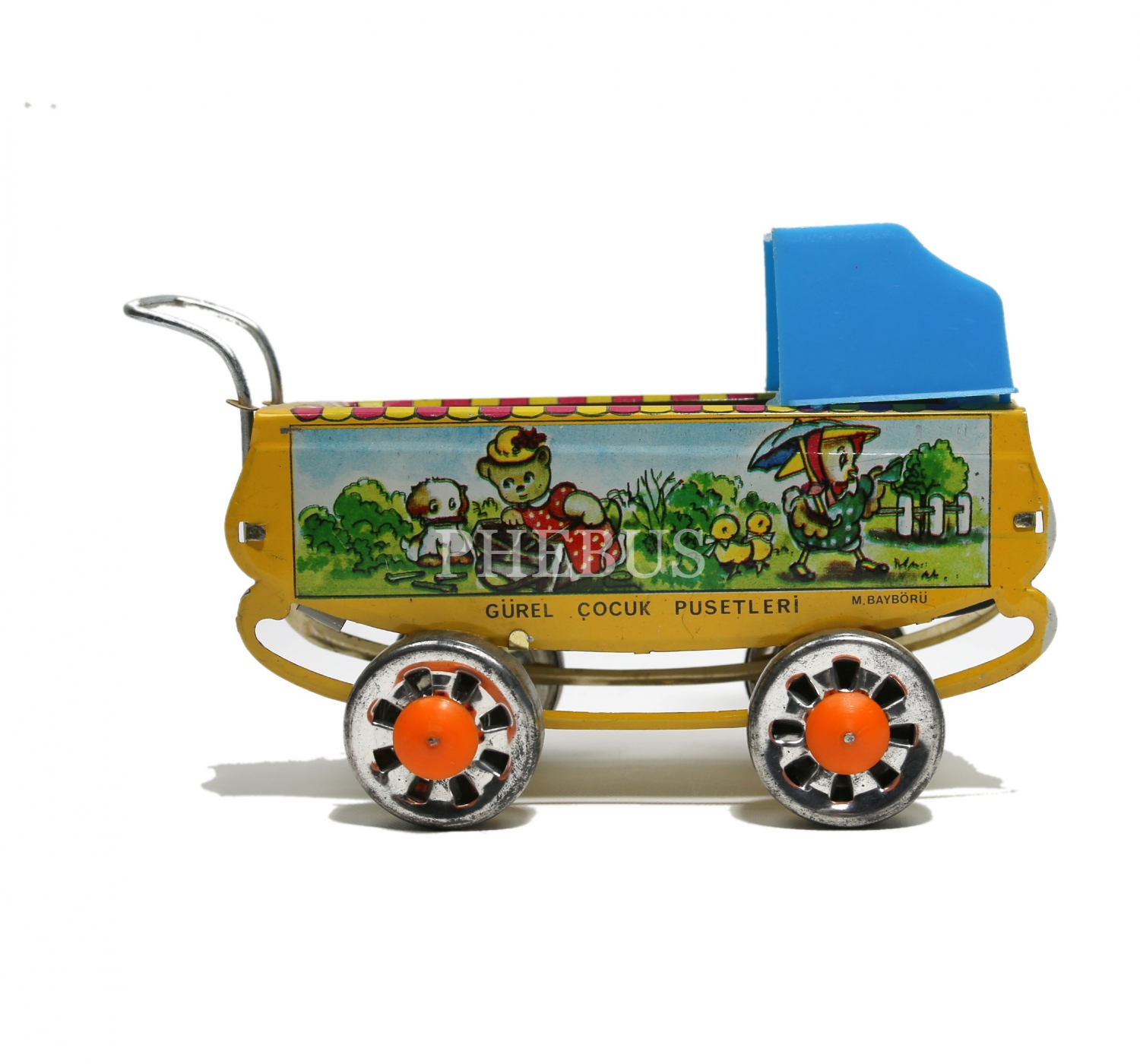Türk malı, M. Baybörü, Gürel marka, teneke çocuk puseti, 18x8x11 cm