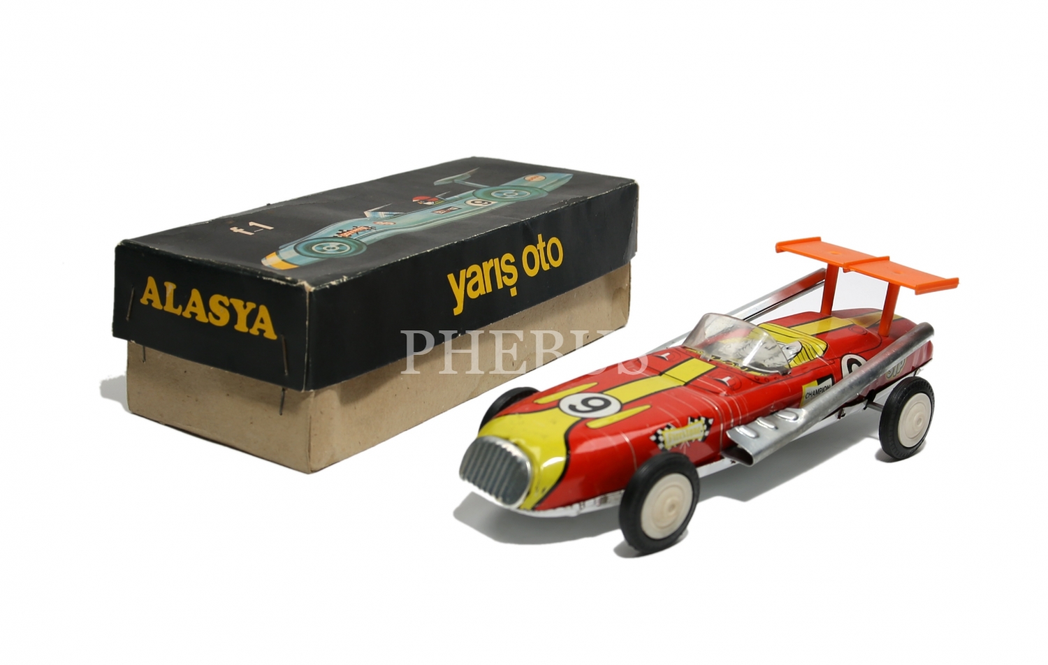Türk malı, Alasya marka, orijinal kutusunda, teneke yarış otosu, 26x11x7 cm