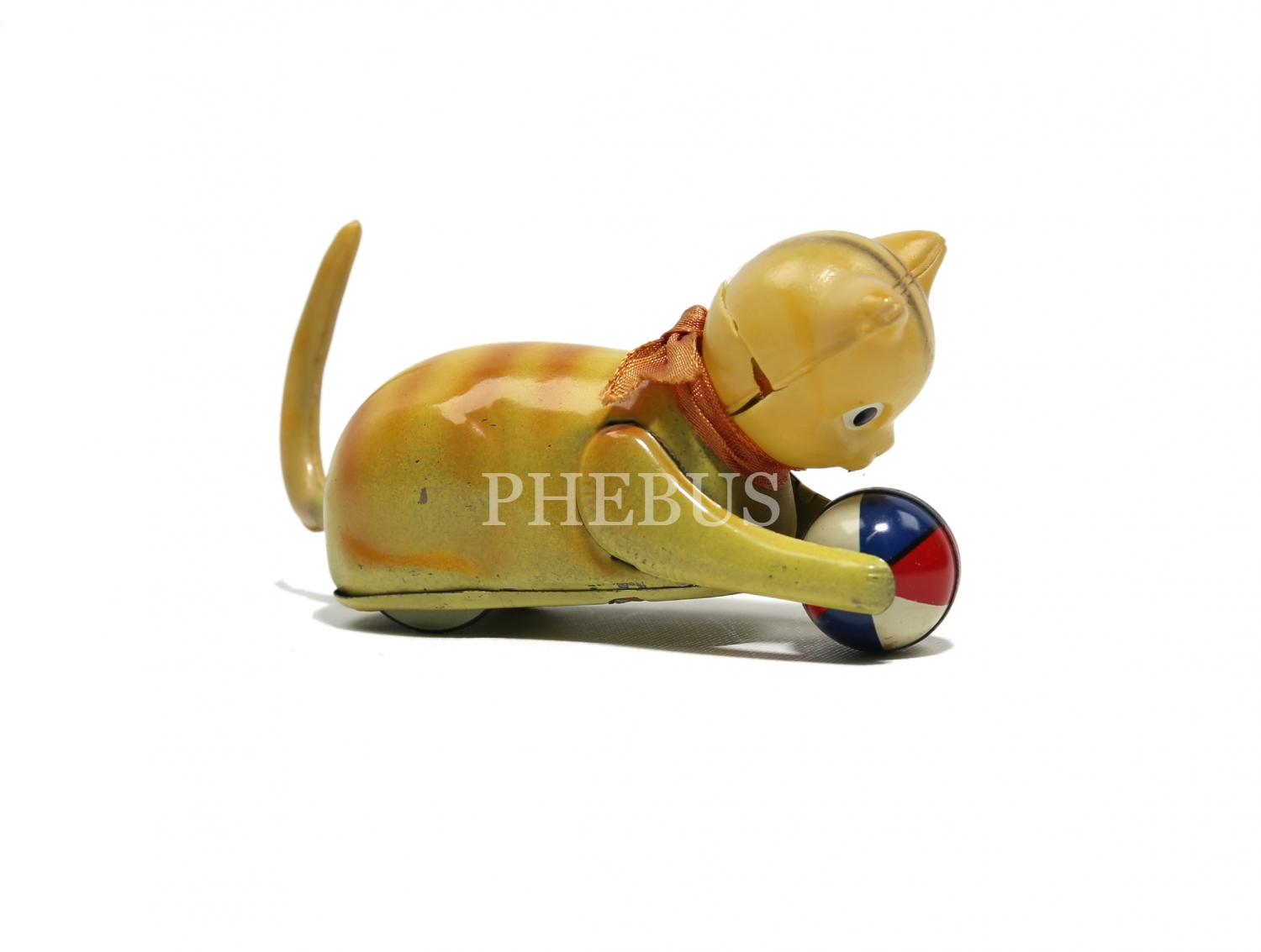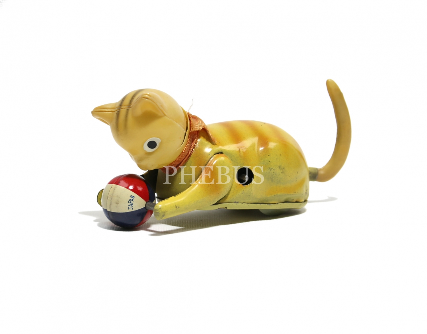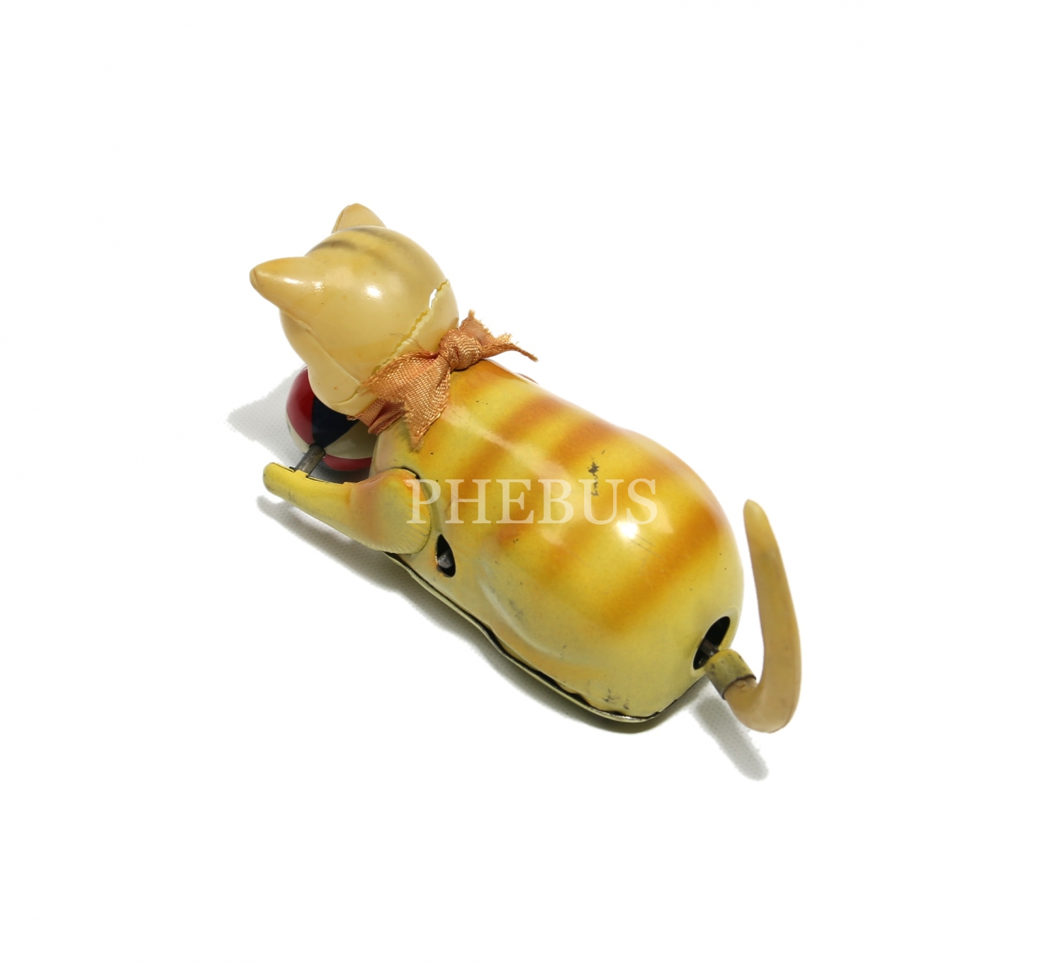 Japon malı, eski dönem, yarı teneke, yarı plastik oyuncak kedi, haliyle, 12x5x6 cm