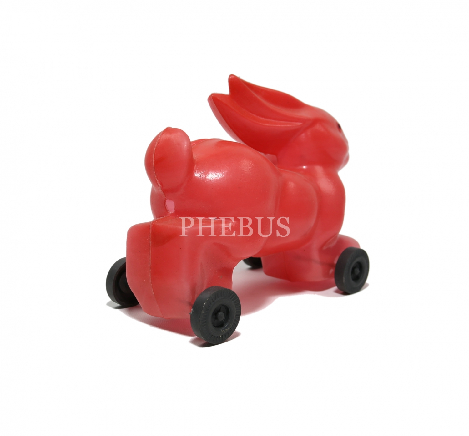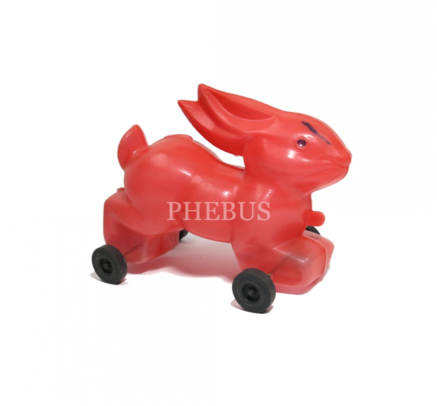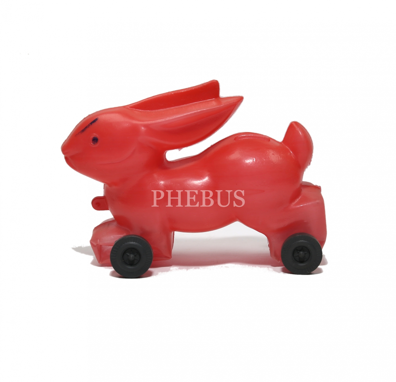 Türk malı, şişme plastik, tekerlekli oyuncak tavşan, 19x8x15 cm