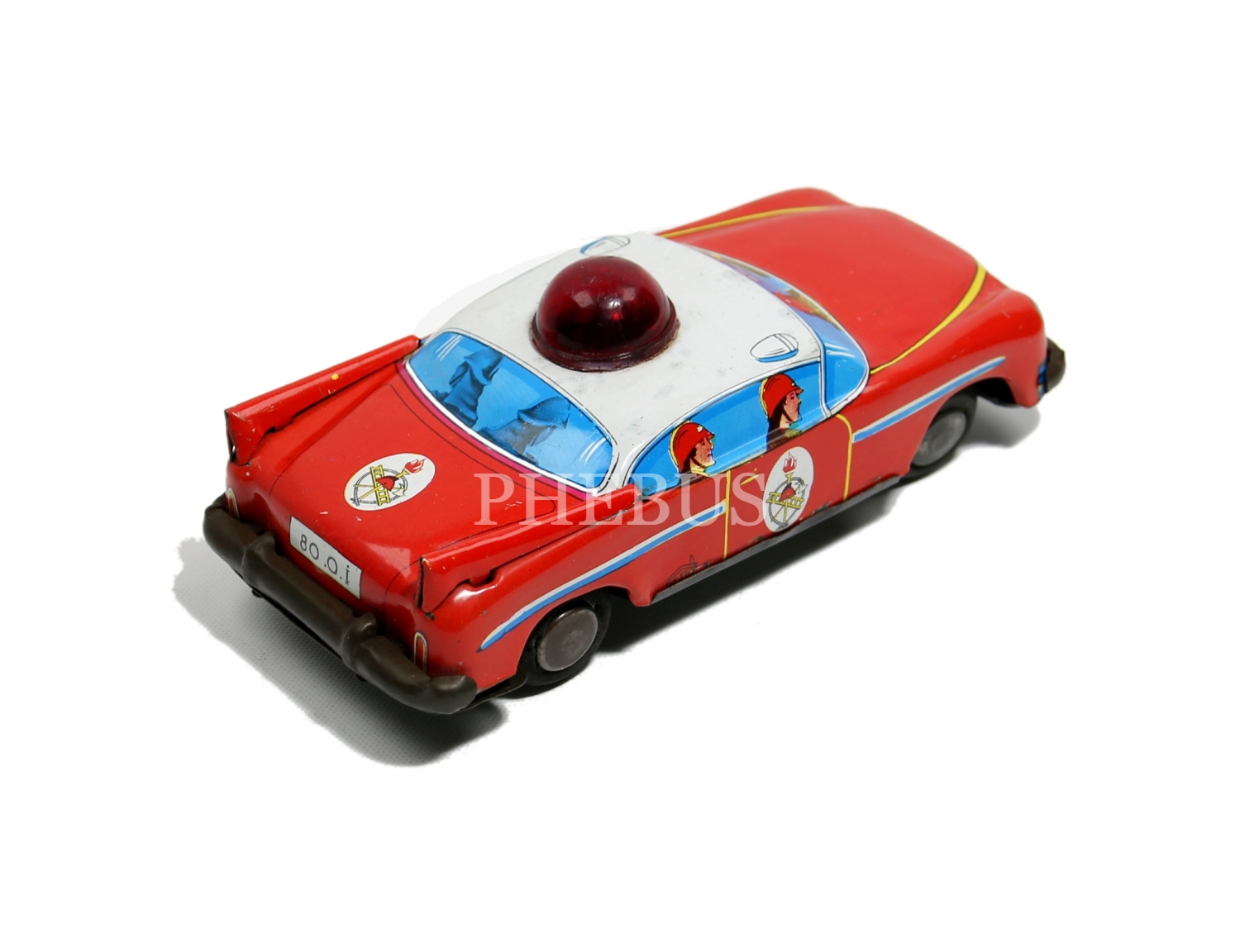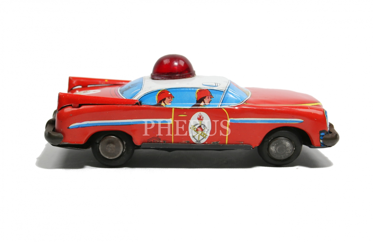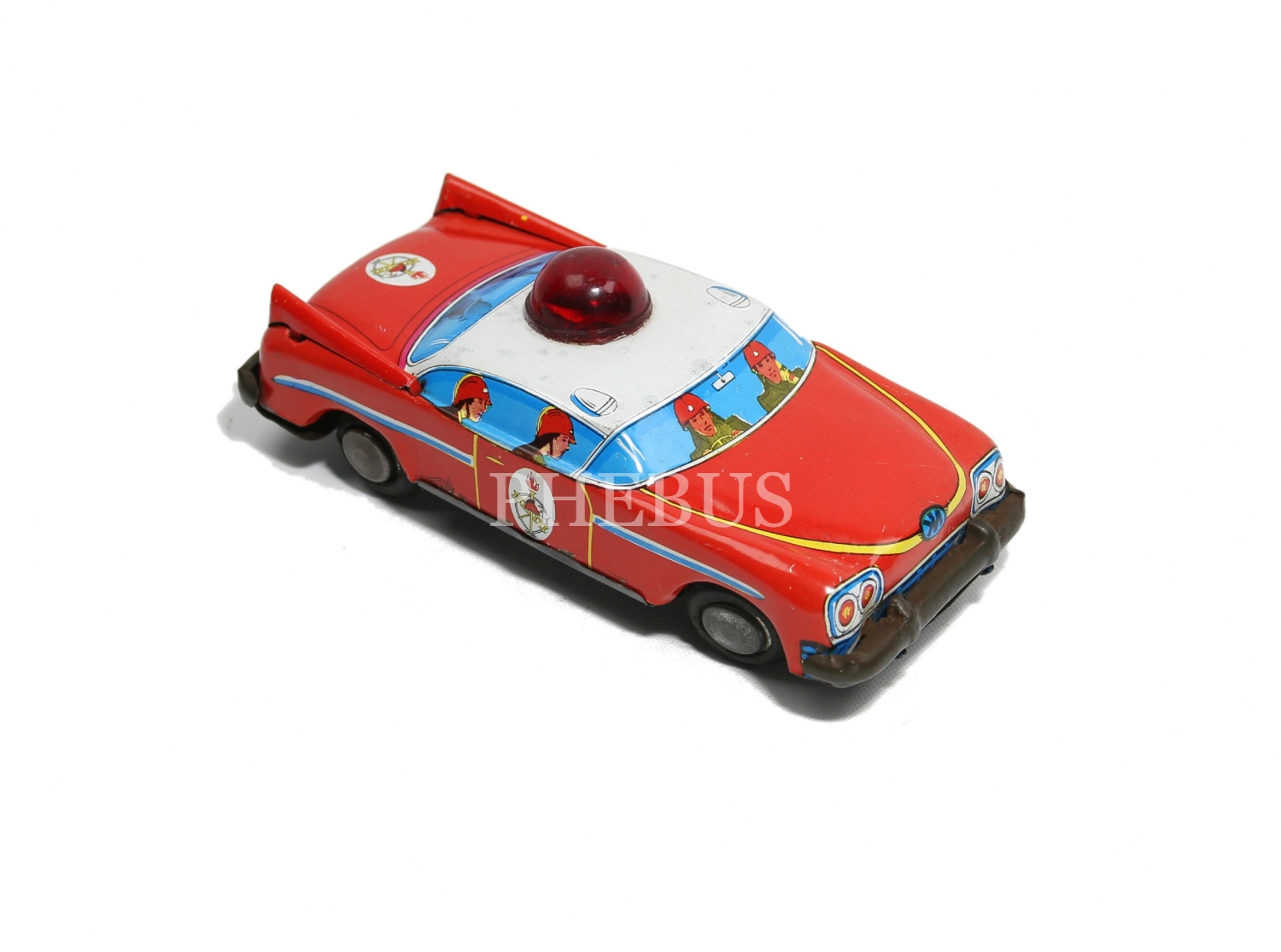 Türk malı, Nekur, kırmızı tepe lambalı teneke itfaiye otosu, 12x6x7 cm