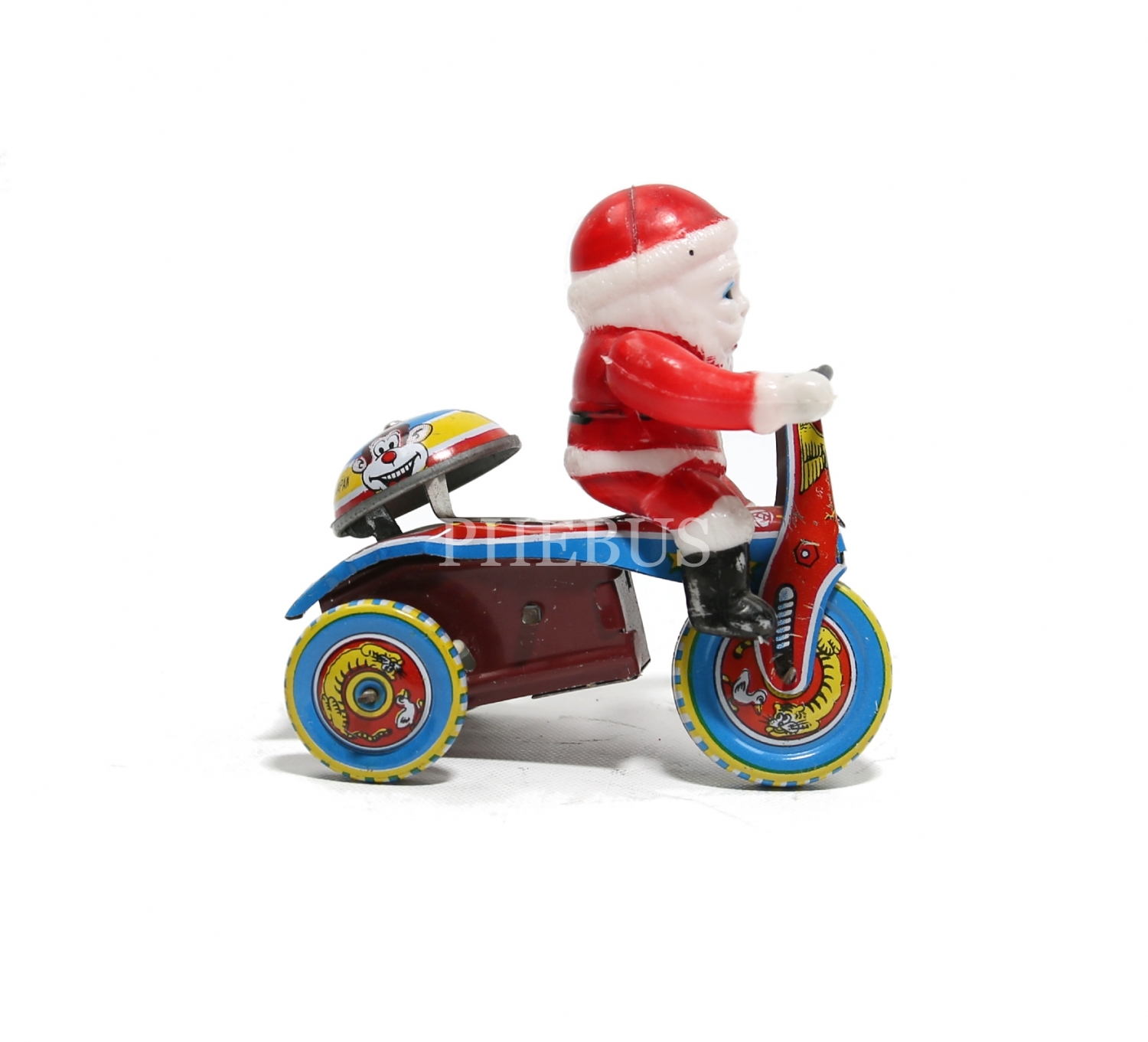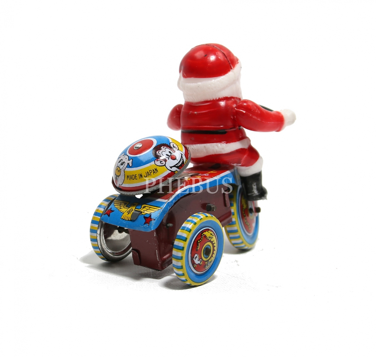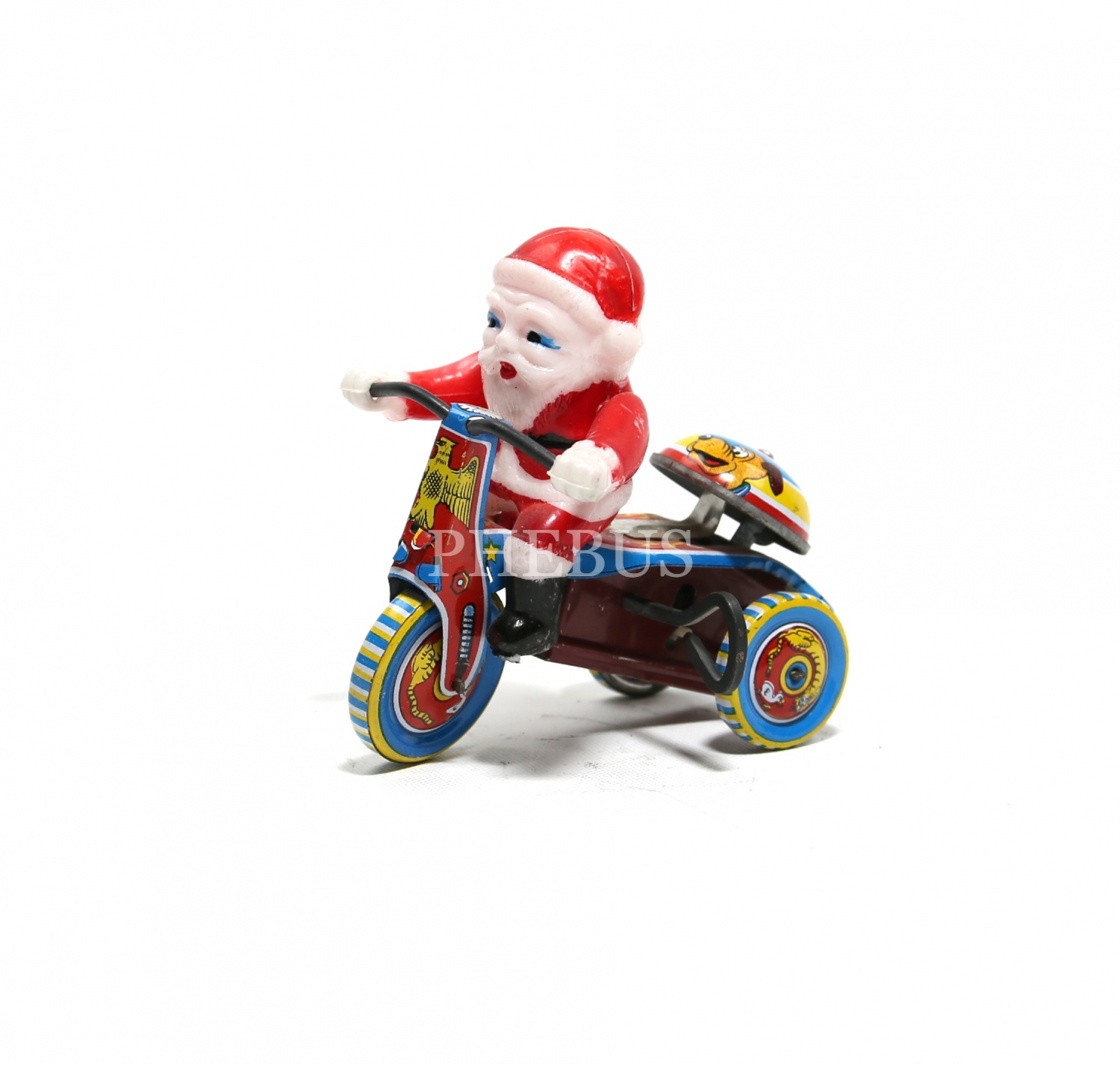 Japon malı, teneke, kurmalı, bisikletli oyuncak noel baba, haliyle, 9x5x10 cm