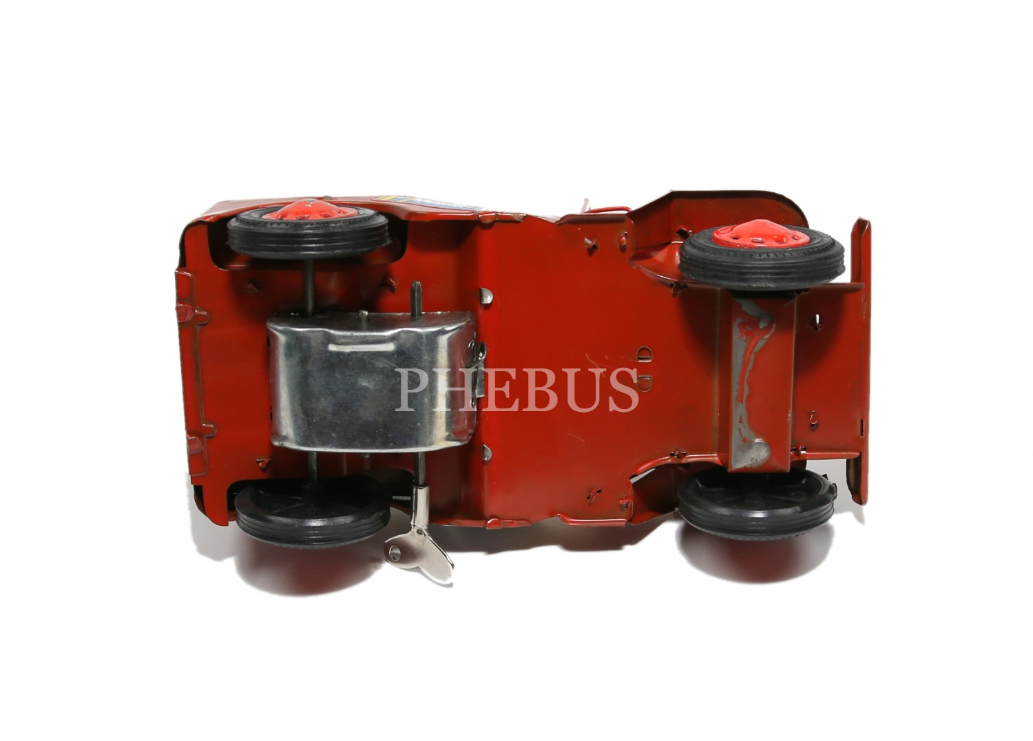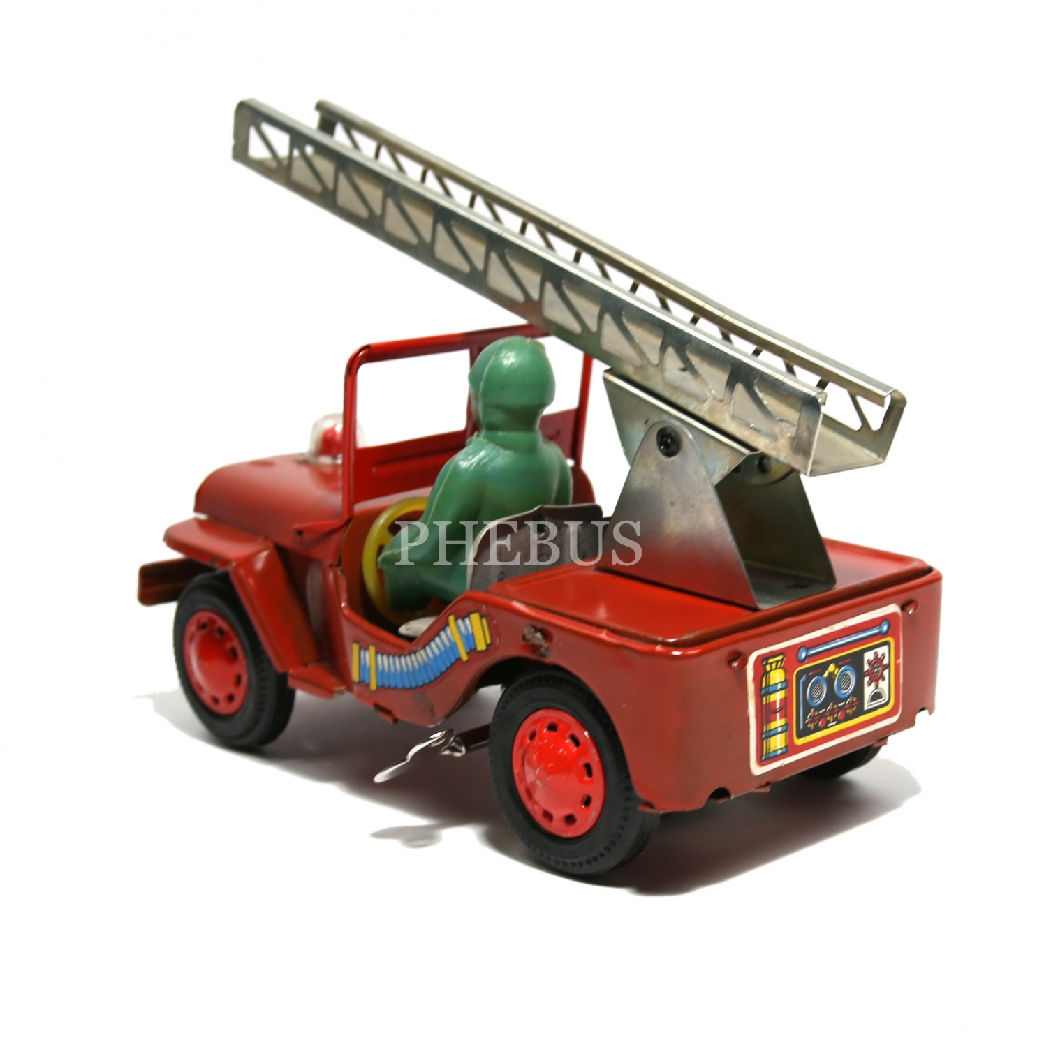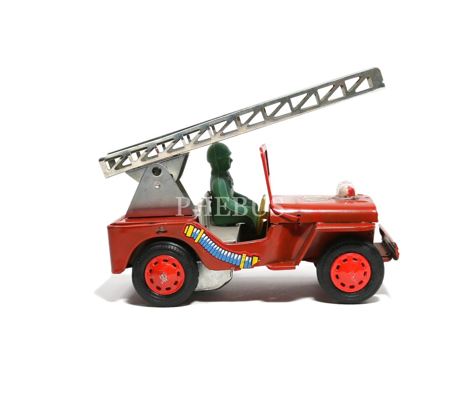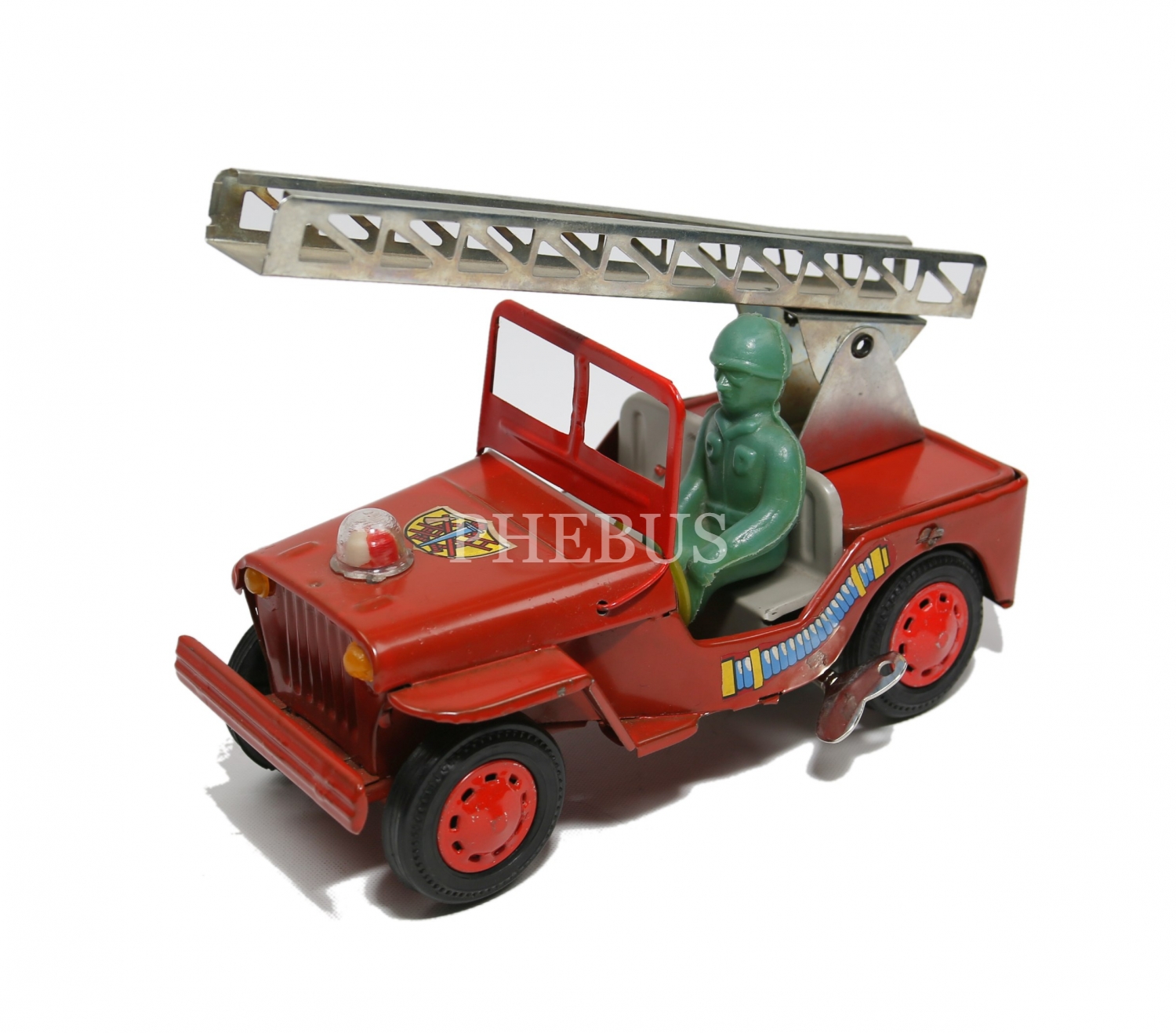 Türk malı, Alasya marka, teneke, kurmalı, çalışır durumda, itfaiye jipi, 21x10x13 cm