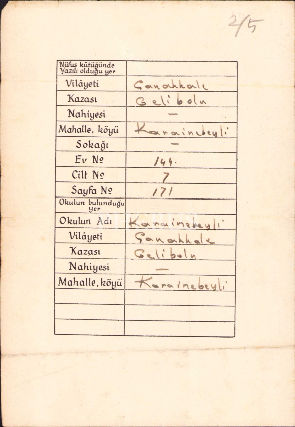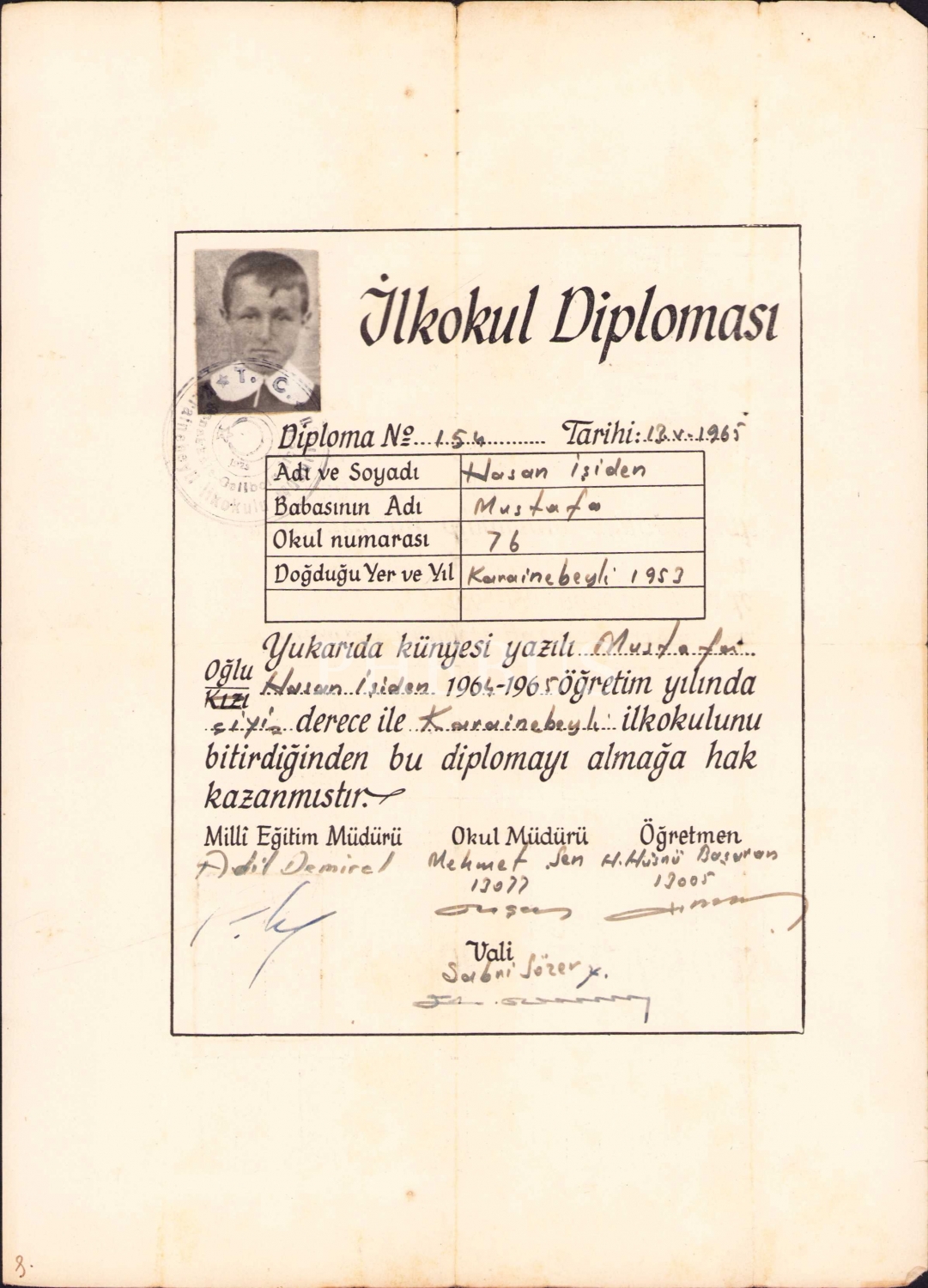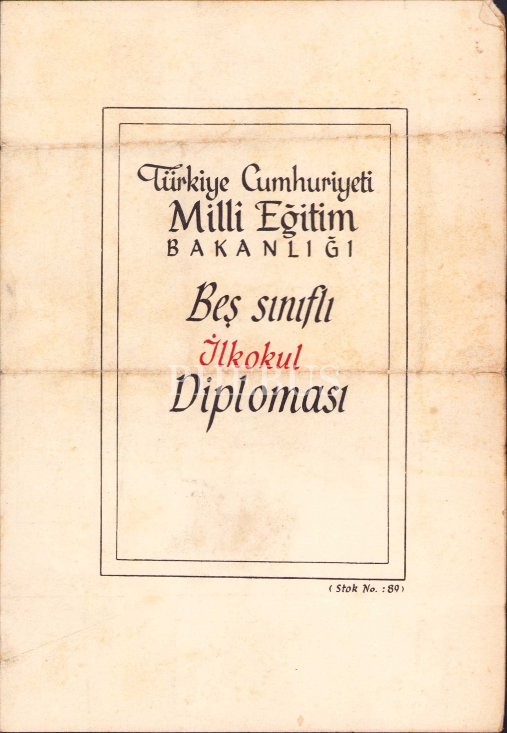 T.C. Milli Eğitim Bakanlığı İlkokul Diploması, Karainebeyli, 1965, 19x27 cm