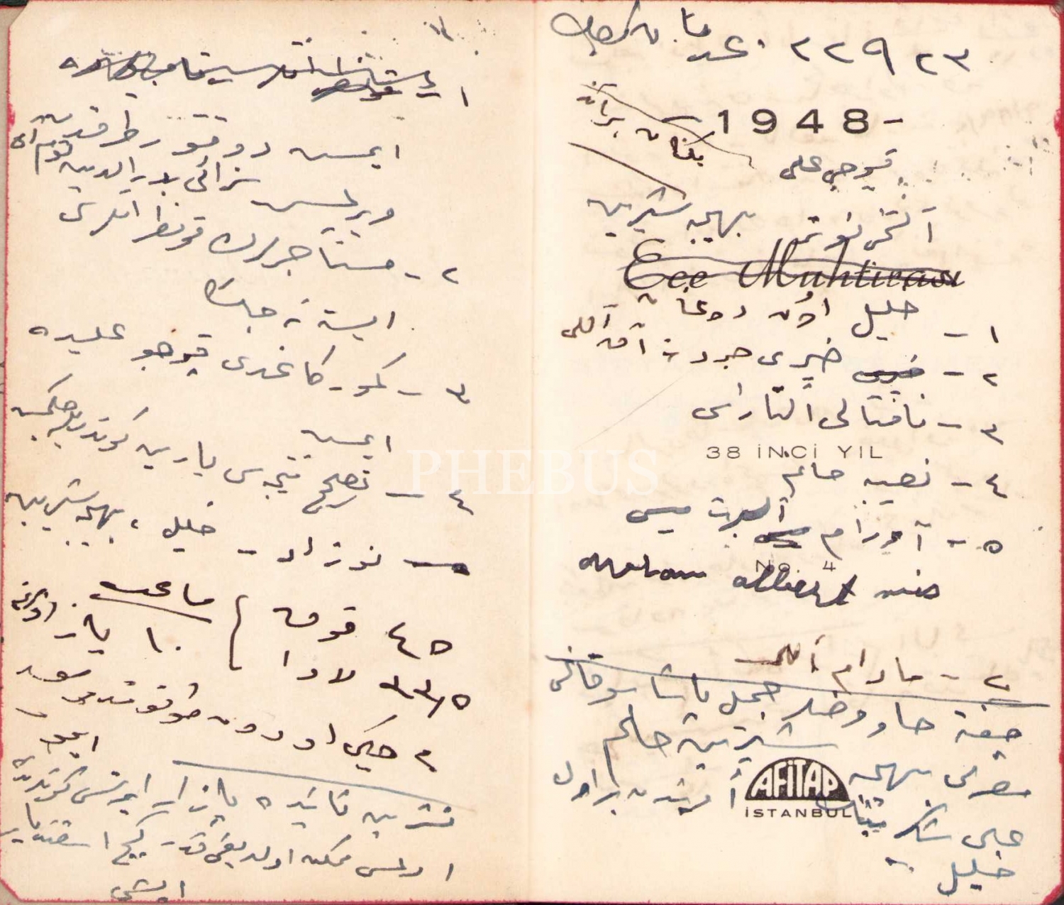 Ece 1948 ajandası, muhtelif Osmanlıca notlar bulunmaktadır, 8x12 cm