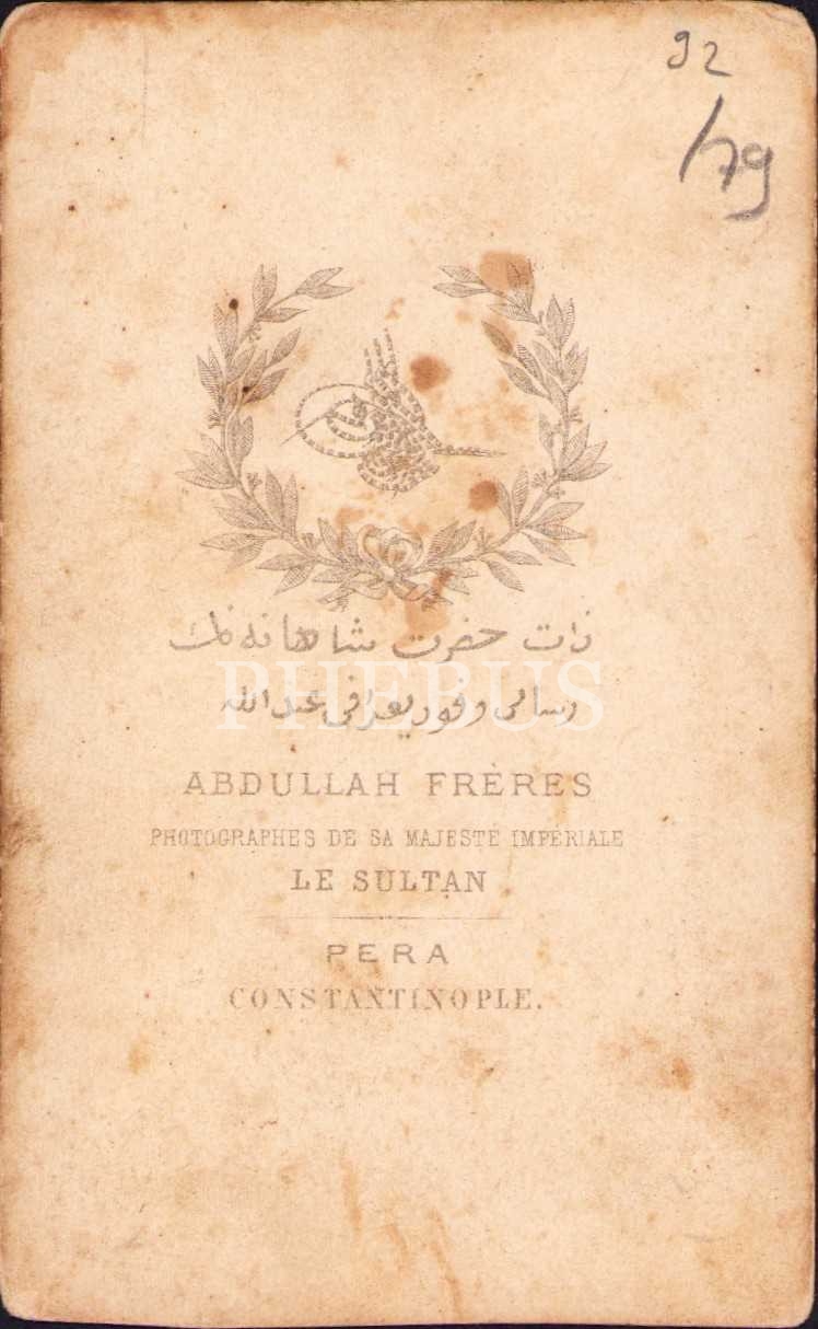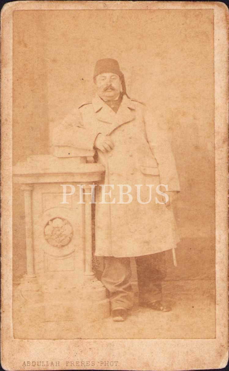 Photo Abdullah Freres, Osmanlı dönemi fesli erkek tip kabin fotoğrafı, 6x9 cm
