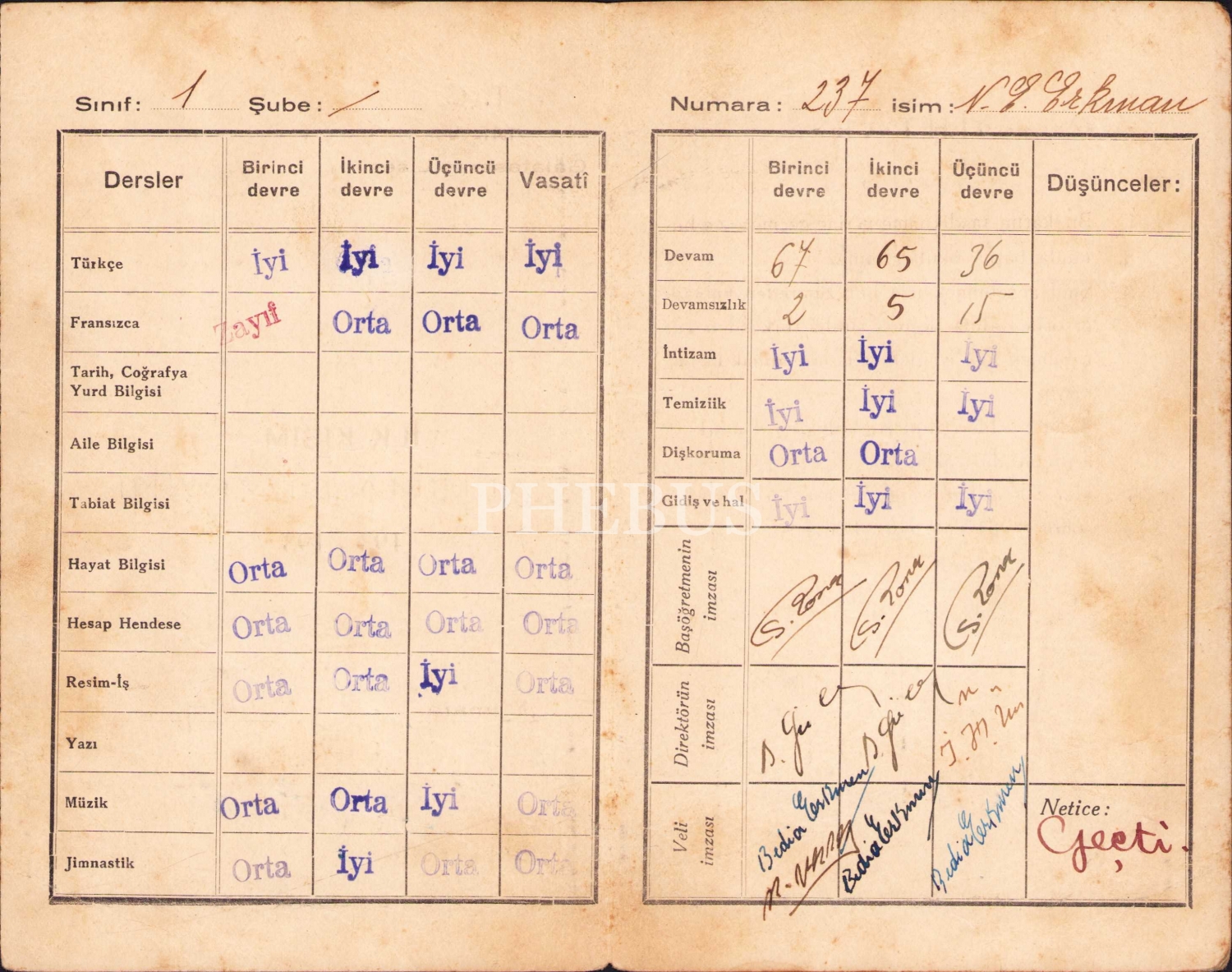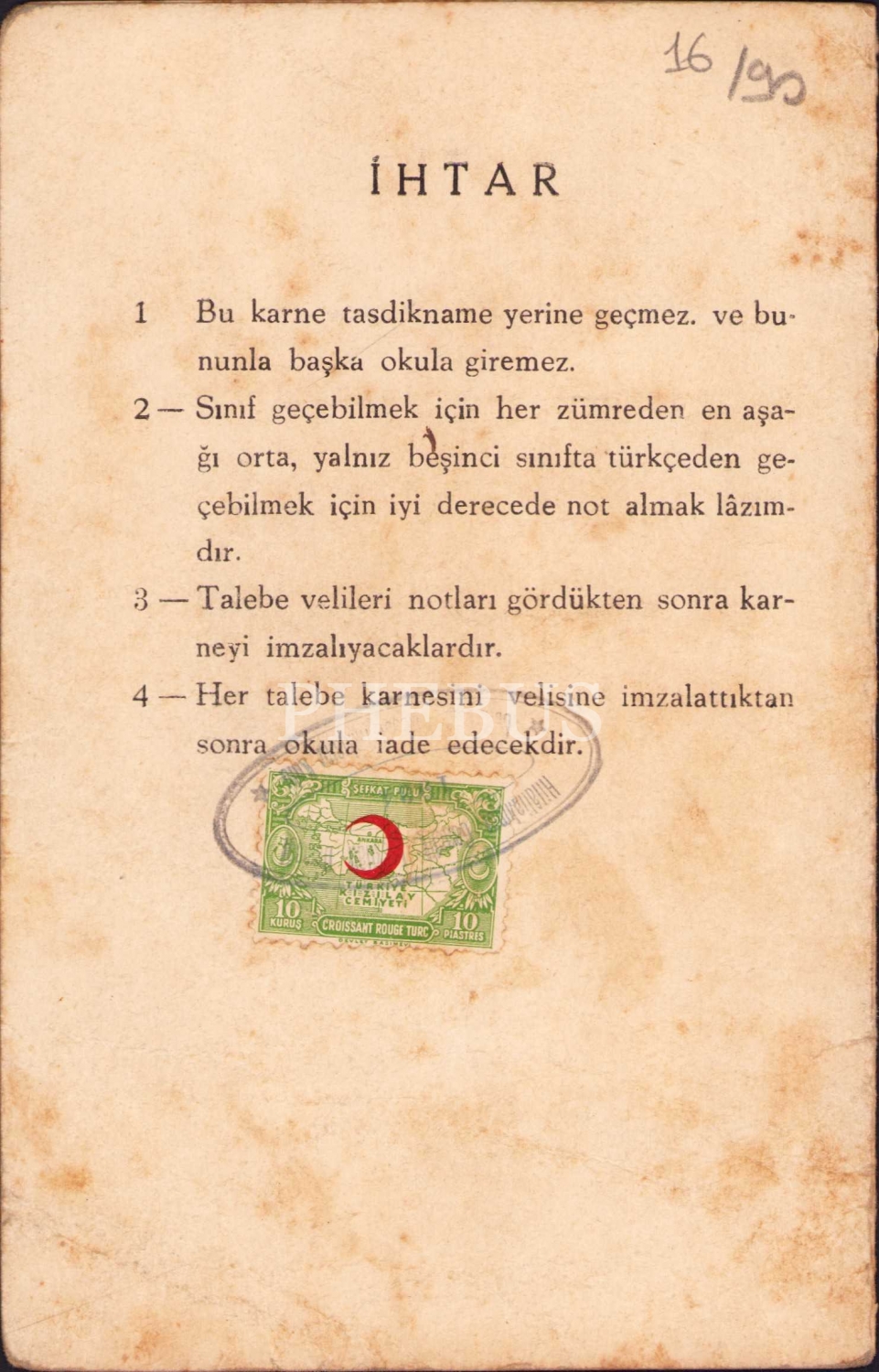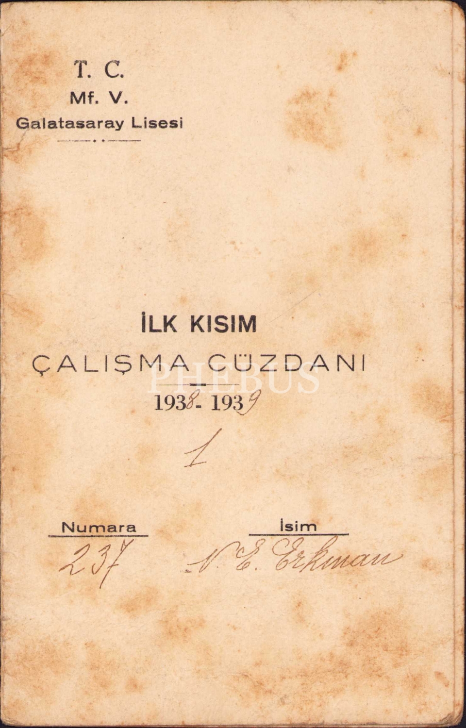 T.C. Galatasaray Lisesi ilk kısım çalışma cüzdanı, 1939, 12x18 cm