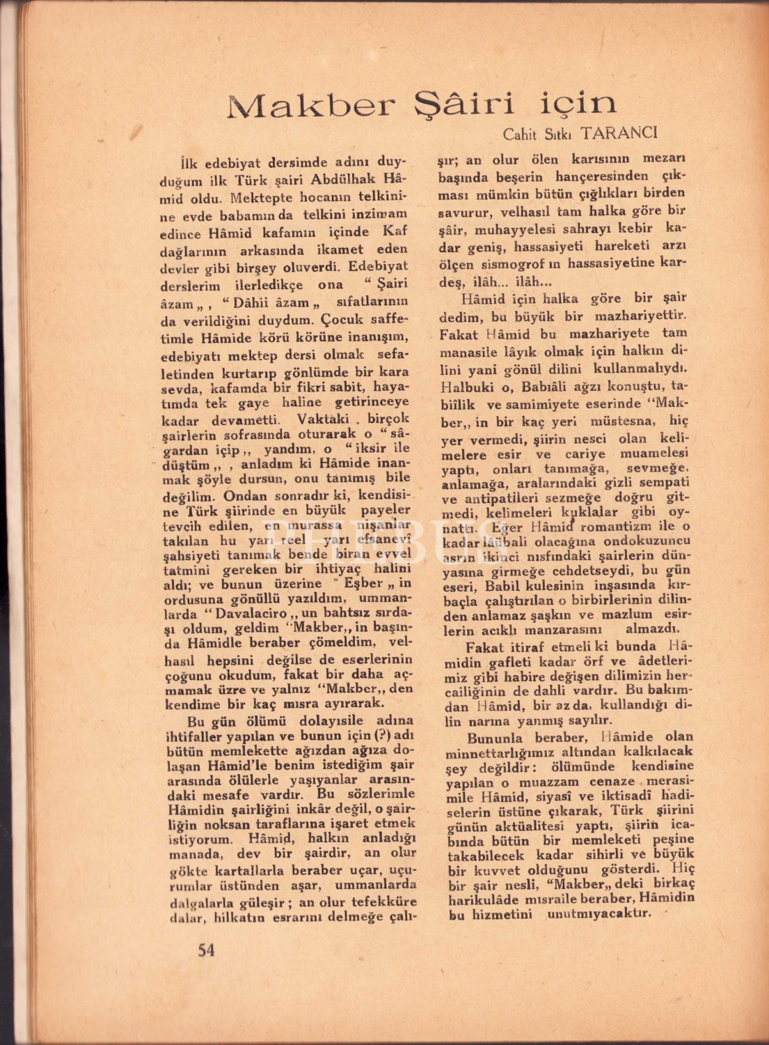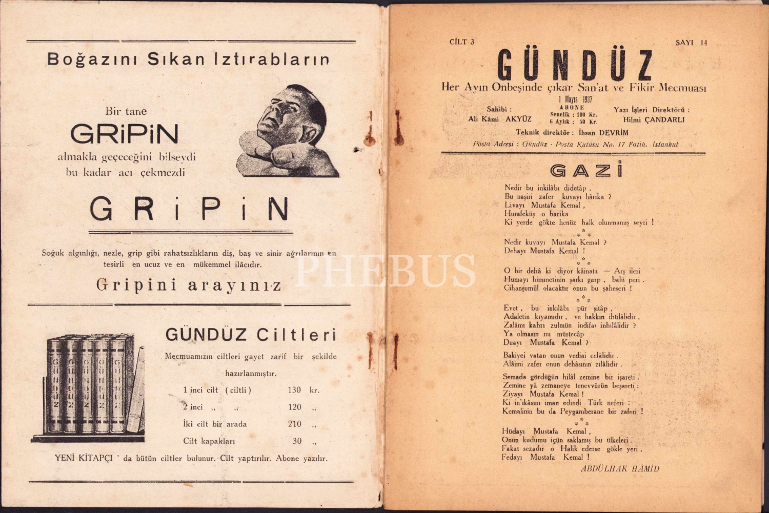 Gündüz Mecmuası, Abdülhak Hamid Tarhan Özel Sayısı, 3. cilt, sayı: 14, Sahibi: Ali Kamil Akyüz, 1 Mayıs 1937,