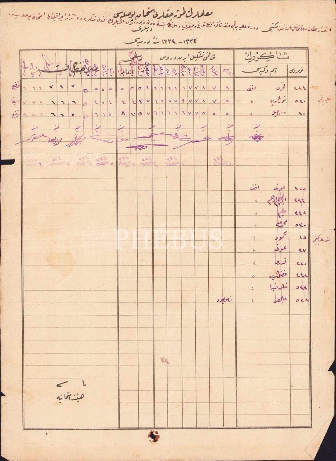 Osmanlıca muallimlerin tutacakları imtihan pusulası, Üsküdar Sultan Mustafa Han Salis Numune Mektebi, 1334, 21x30 cm