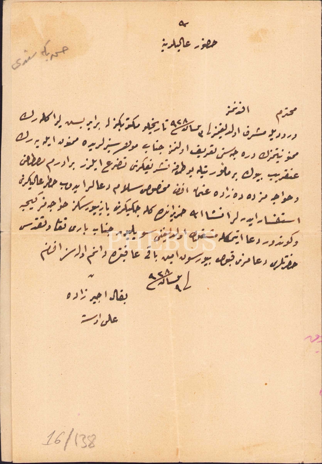 Osmanlıca Bakkal Ahir Zade Ali Bey' ait mektup, 1928, 14x20 cm