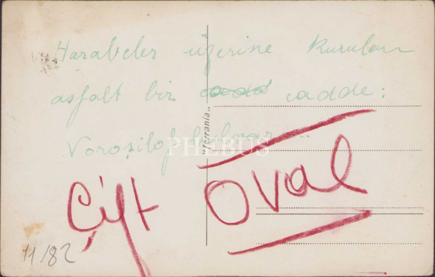 İzmir Votoşilof Bulvarı görünümü, Gazi İlk Mektebi detaylı, arkası yazılı