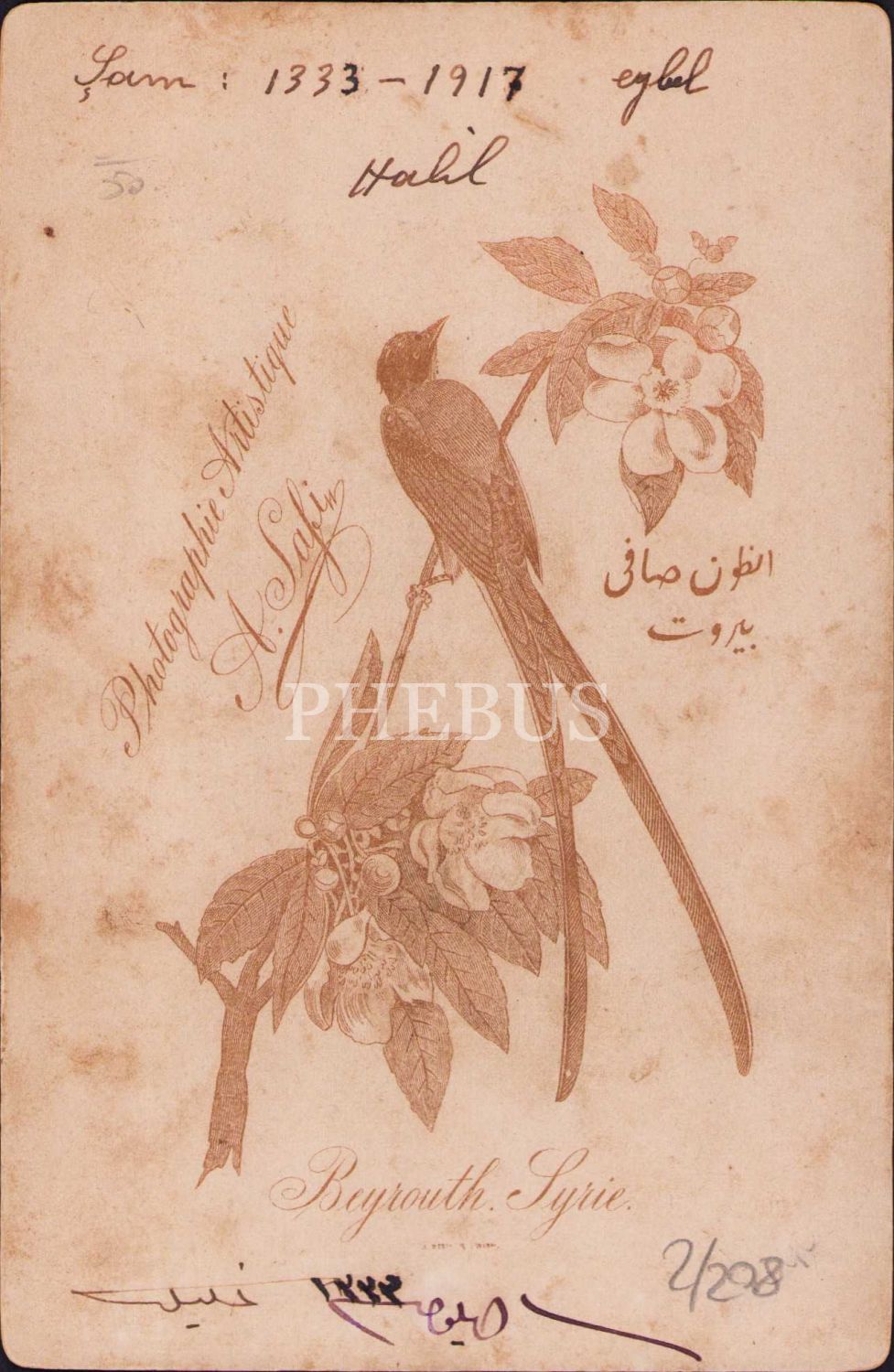 Photo A. Safi, Beyrut, fesli Osmanlı tip kabin fotoğrafı, 8x12 cm