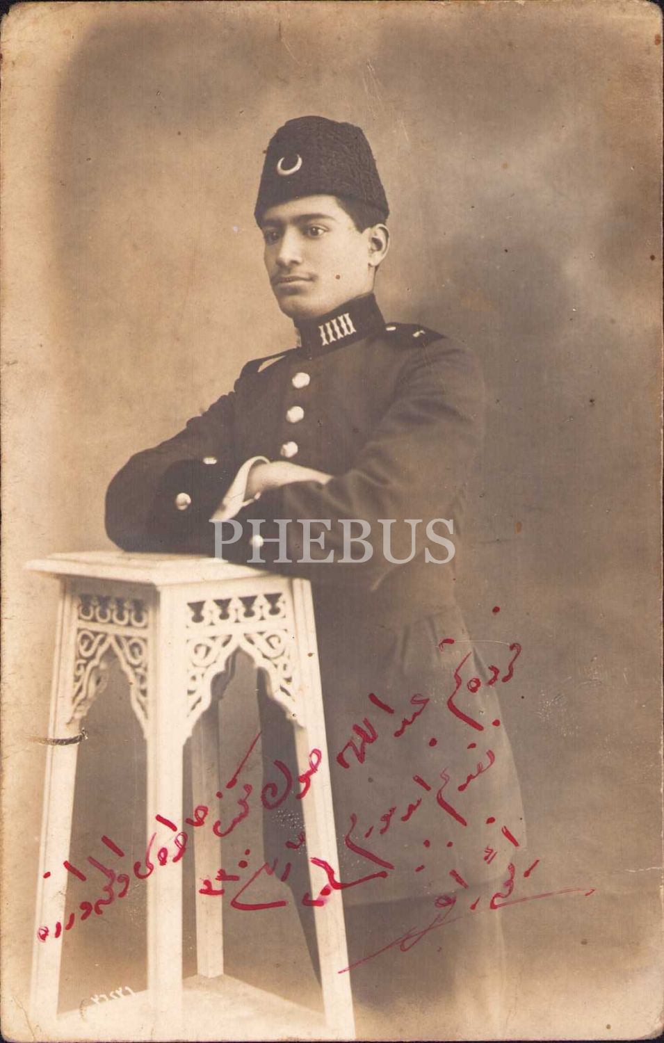 Kalpaklı asker mektep hatırası, Osmanlıca ithaflı 1320, Photo Resna damgalı