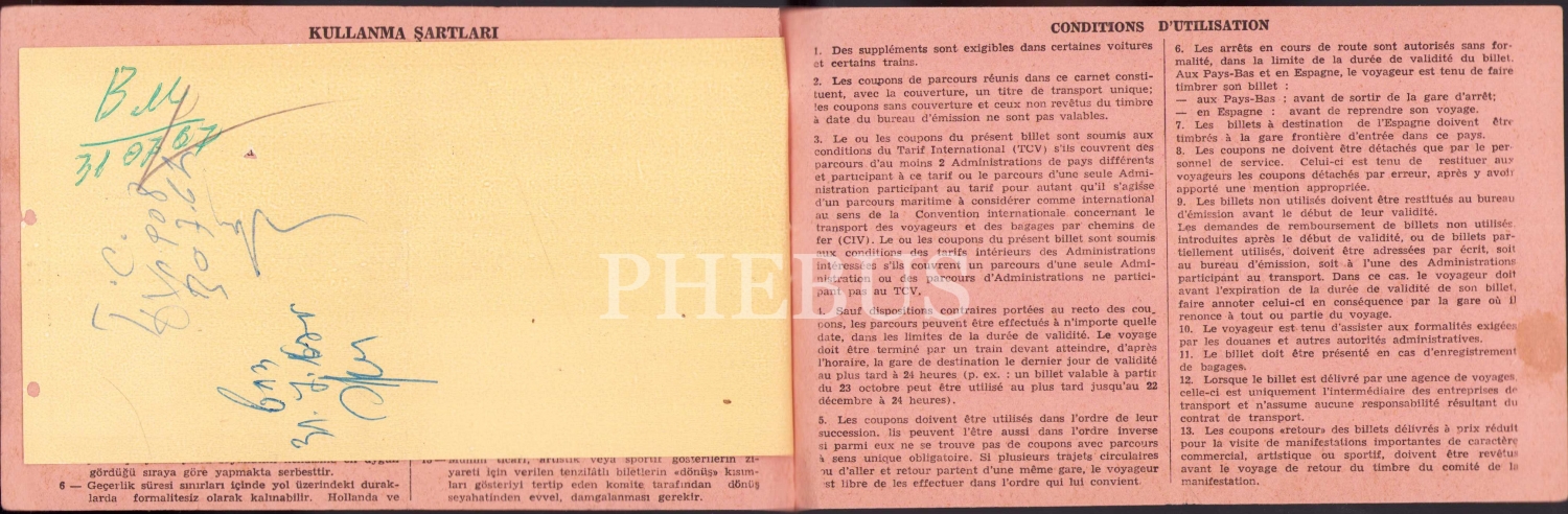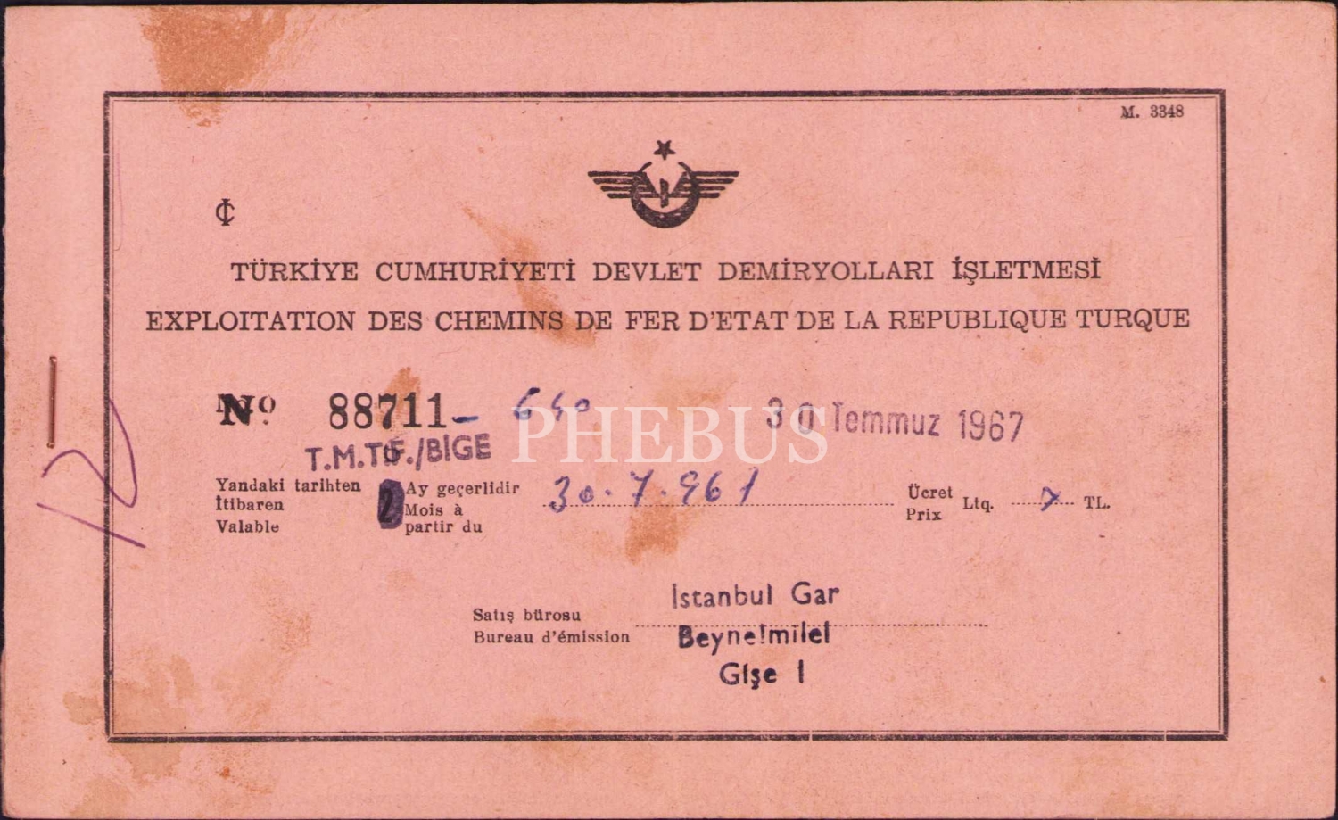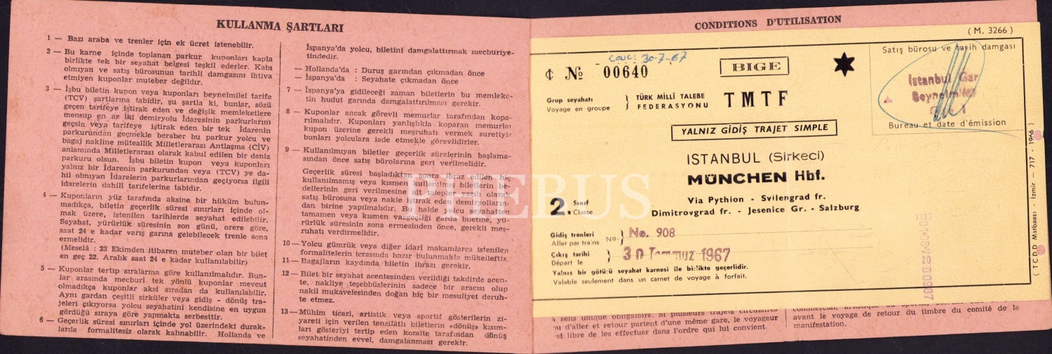 T.C. Devlet Demiryolları İstanbul - Almanya gidiş bileti, 1961, 16x10 cm