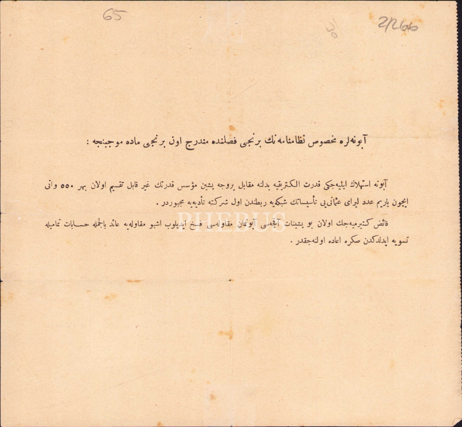 Osmanlı Anonim Elektrik Şirketi peşin ödeme makbuzu, İstanbul, mühürlü, damgalı, 1330'lar, 22x20 cm