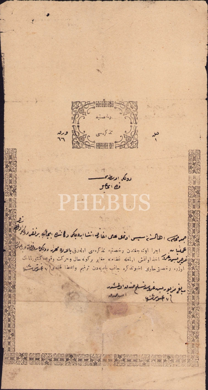 Osmanlı Dülger Dükkanına ait Ruhsatiye Tezkeresi, 1302 tarihli, yıpranmış, haliyle, 15x28 cm
