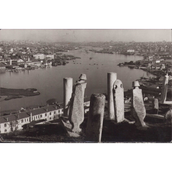 İstanbul Eyüp'ten Haliç manzarası, Eyüp Mezarlığı detaylı, Basın Müzesi Kütüphanesi kaşeli, 18x12cm
