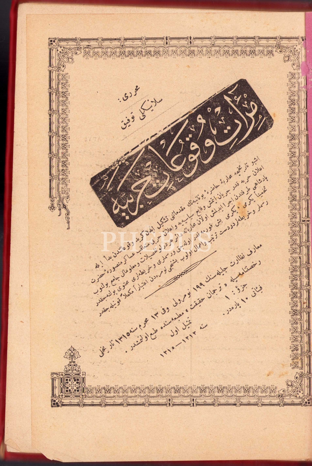 Mirat-ı Vukuat-ı Harbiye, Selanikli Tevfik, Tercüman-ı Hakikat Matbaası, 1310, Osmanlıca, ciltli, 304 sayfa, 16x24cm