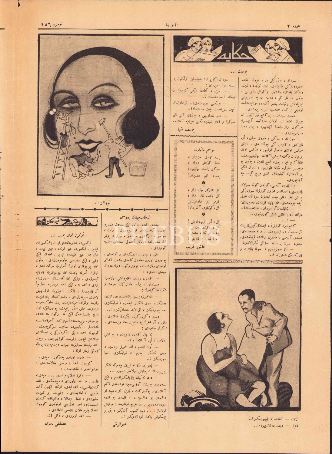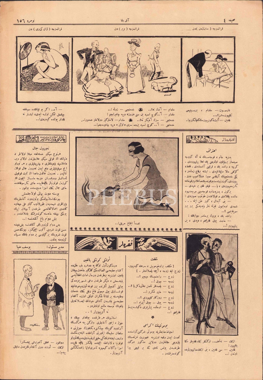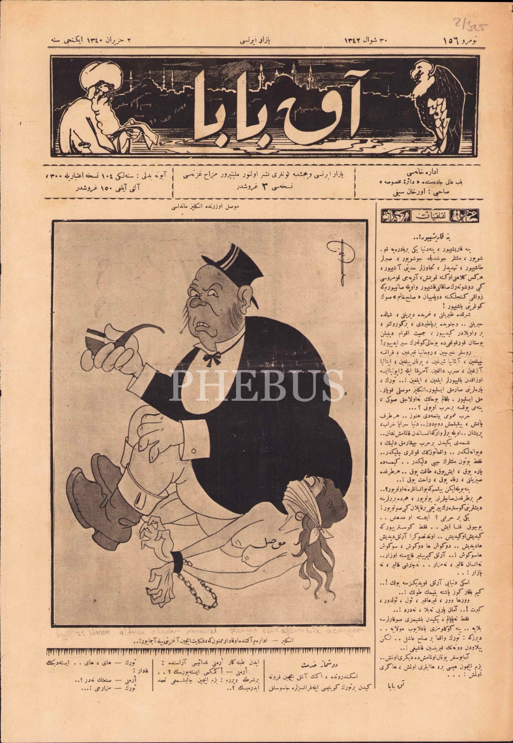 Osmanlıca Akbaba mizah gazetesi, sahibi Orhan Seyfi, 1340, kapak "İngiliz - İdaresi Altında O kadar Memnun Ki Şikayet İçin Ağzını Bile Açmıyor", 4 sayfa, 28x40 cm