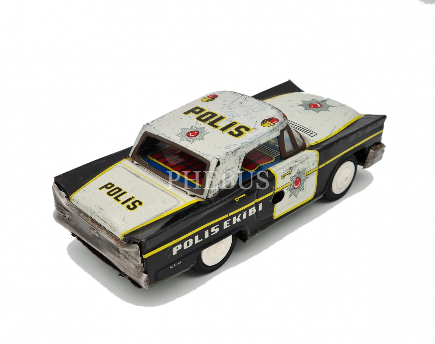Türk malı, Alasya teneke kurmalı polis arabası, 9x22x7 cm