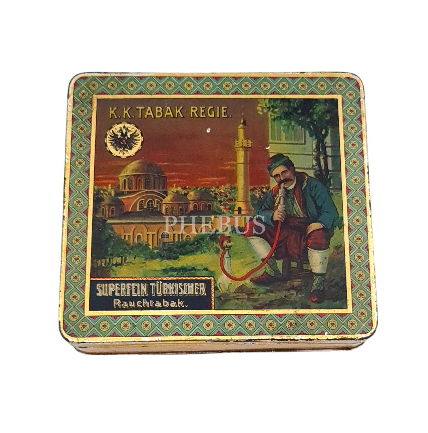 Almanca, Superfein Türkisher Rauchtabak teneke sigara kutusu, 13x12x3 cm