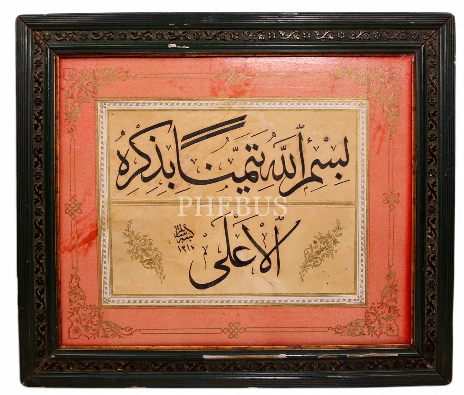 Celi Sülüs yazı, Salim ketebeli, 1217 tarihli, çerçeveli, 30x24 cm