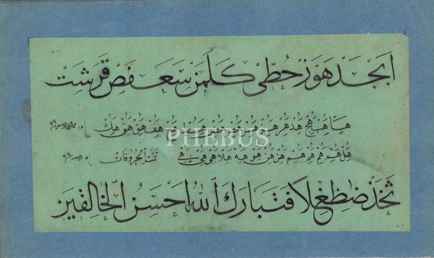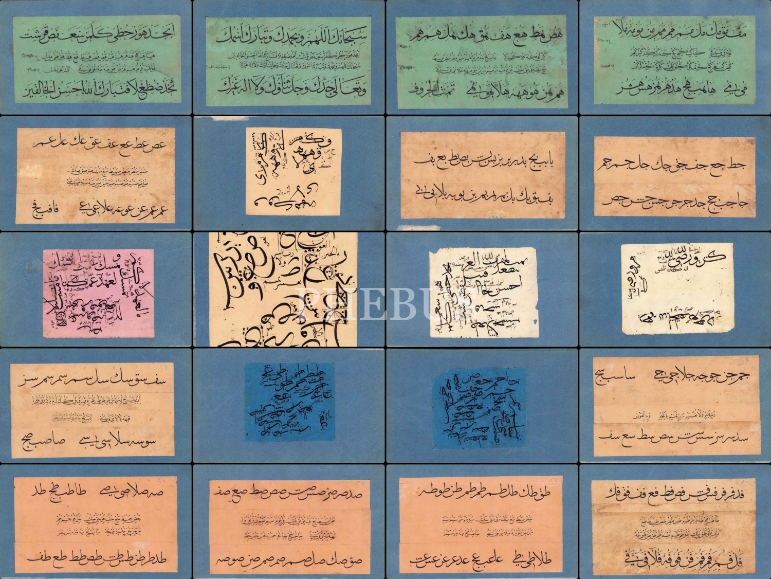 Hoca işi Sülüs Nesih Meşk Murakkaı ve karalama defteri, 1299 tarihli, "Hafız Tahsin Efendi hattıdır" notlu, 20 sayfa, 16x26 cm