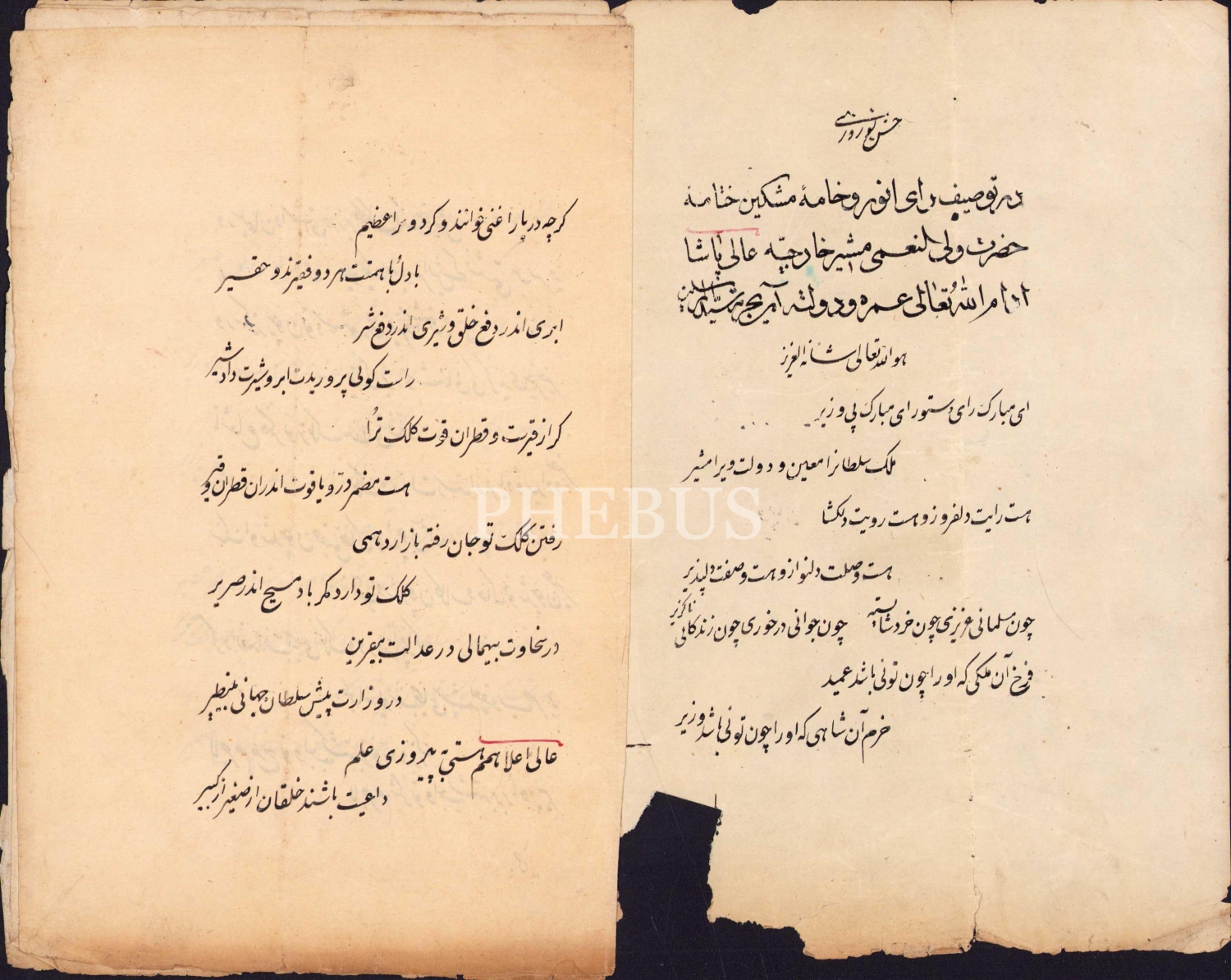 Hariciye Müşiri Ali Paşa'ya ithaflı talik şiir, 6 sayfa, haliyle, 14x22 cm