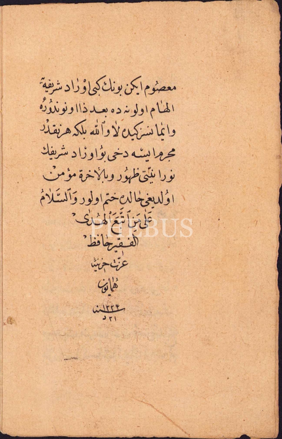 Osmanlıca risale, Hafız İzzet Harbiye-yi Hümayun ketebeli, 1224 tarihli, 9 sayfa, 11x17 cm