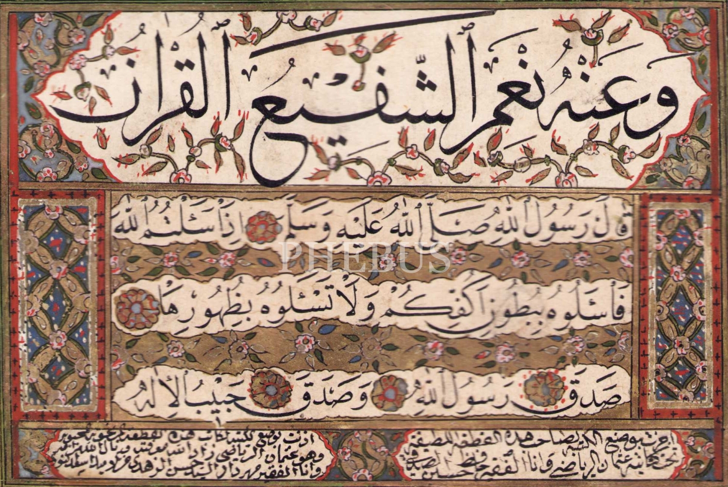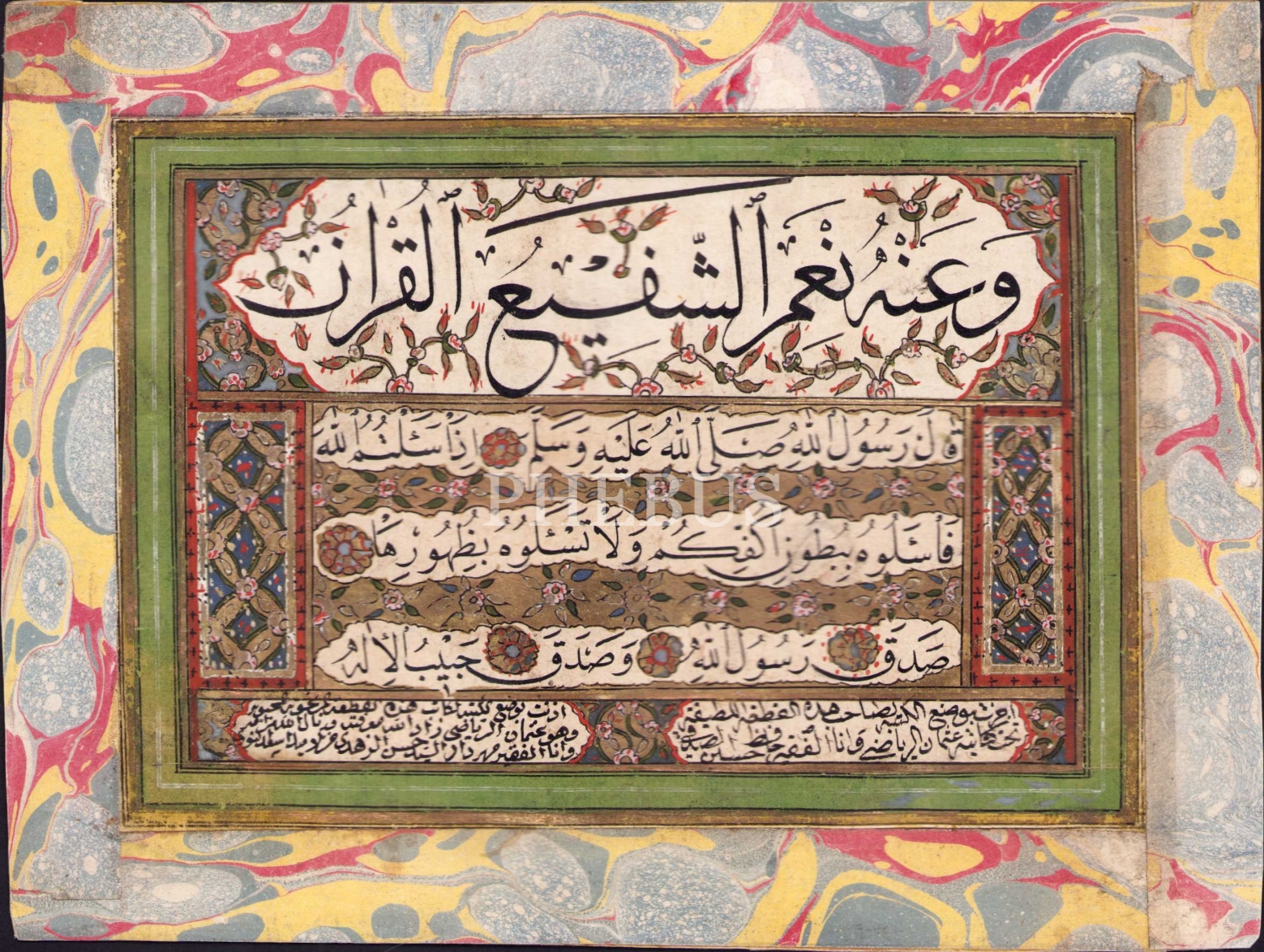 Sülüs Nesih Hat İcazetnamesi, Hafız Hüseyin Sıdki ve Seyyid Hasan Zühdi'den Ömer Riyazi Efendi'ye verilmiş, 18. yüzyıl dönem tezhibi ile, 17x12 cm